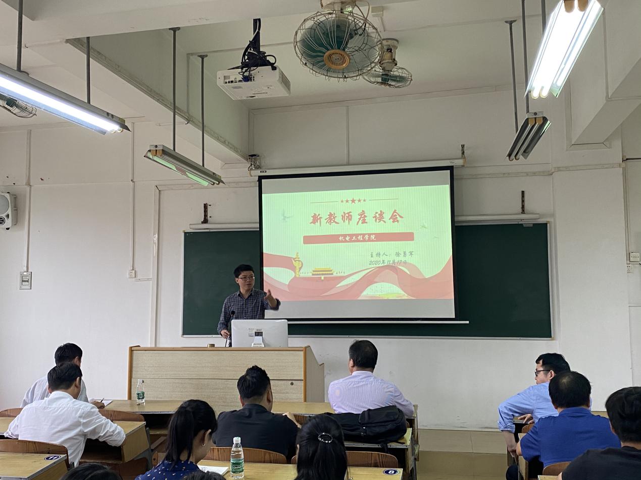 2020年11月17日下午,机电工程学院在西区综合楼召开了新教师座谈会,学院党总支书记邵超城、院长徐勇军、党总支副书记梁超鹏、副院长丘永亮、副院长游凯、各系系主任、各指导教师以及新入职教师参加了本次座谈会。本次会议由院长徐勇军主持。