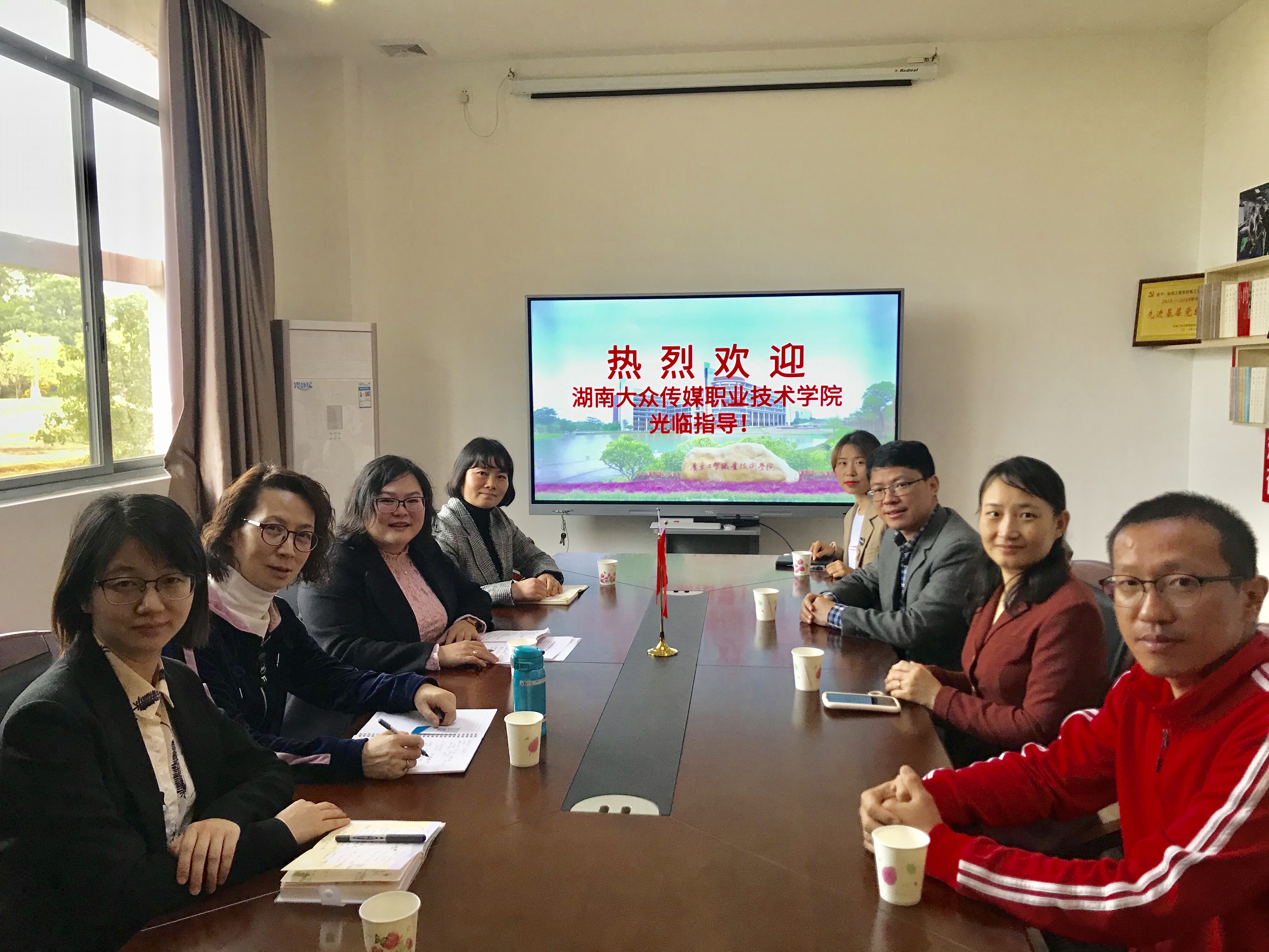 2020年12月11日,湖南大众传媒职业技术学院国际传播学院汉语言文学教研室主任刘淑容等一行4人来我院交流。人事处处长杨慧,机电工程学院院长徐勇军、教师孔令叶、辅导员邵盼盼参与此次交流会。