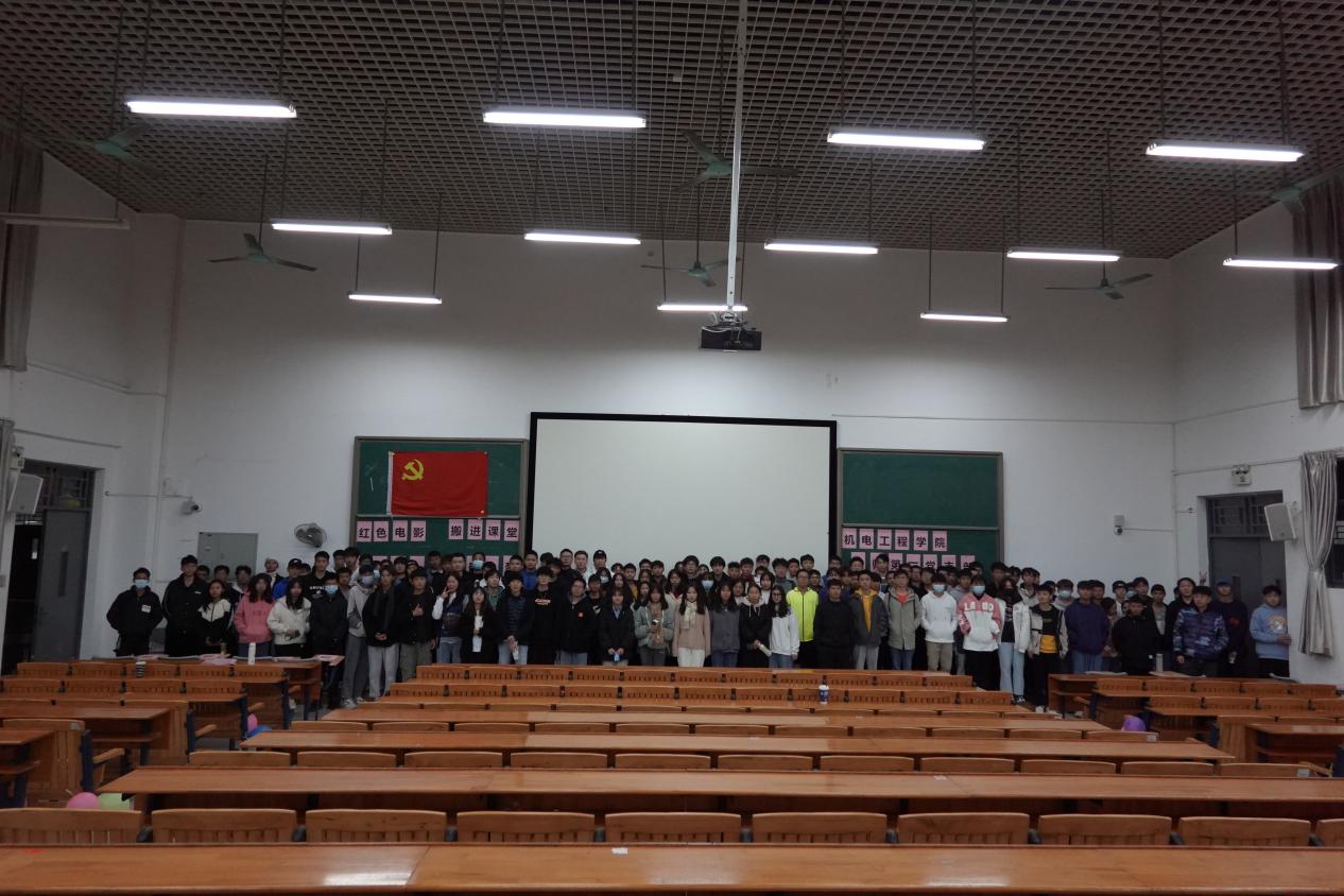 为了深入贯彻落实习近平总书记在纪念中国人民志愿军抗美援朝出国作战70周年大会上的重要讲话精神,传承和弘扬伟大的抗美援朝精神,培育践行社会主义核心价值观,进一步加强同学们的爱国主义精神,机电工程学院教师第一党支部组织学生在明德楼2—306观看抗美援朝影片《金刚川》。