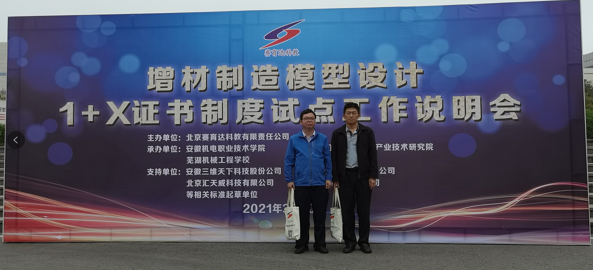 为响应《国家职业教育改革实施方案》与促进工业设计一类品牌专业建设,机电工程学院组织了相关人员参加了2021年3月30日于安徽芜湖举办的“增材制造模型设计1+X证书制度试点工作说明会”,机电工程学院教学副院长(工业设计一类品牌专业建设负责人)丘永亮与工业设计系主任周渝明参加了本次大会。