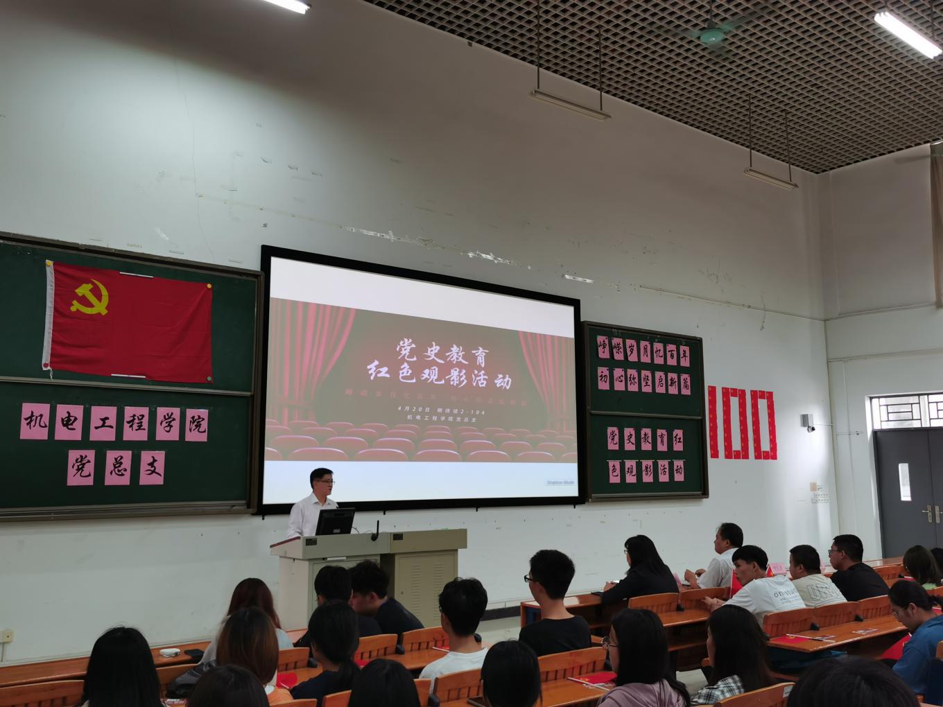 2021年是中国共产党成立100周年,百年历史勾勒出党和民族的发展脉络,构筑起中国共产党人的精神谱系,为进一步推进学校党史学习教育深入开展,4月20日下午2点30分,机电工程学院党总支于明德楼2-104举行“峥嵘岁月忆百年 初心弥坚启新篇”党史教育红色电影展映系列活动启动仪式,并观看红色经典电影《建党伟业》。参加本次开幕式的有,学校党委委员、副校长刘贻新同志、机电工程学院党总支书记邵超城同志、机电工程学院党总支副书记梁超鹏同志、机电工程学院学工办主任严惠琴同志以及机电工程学院学生及其他学院班级代表。开幕式由梁超鹏主持。
