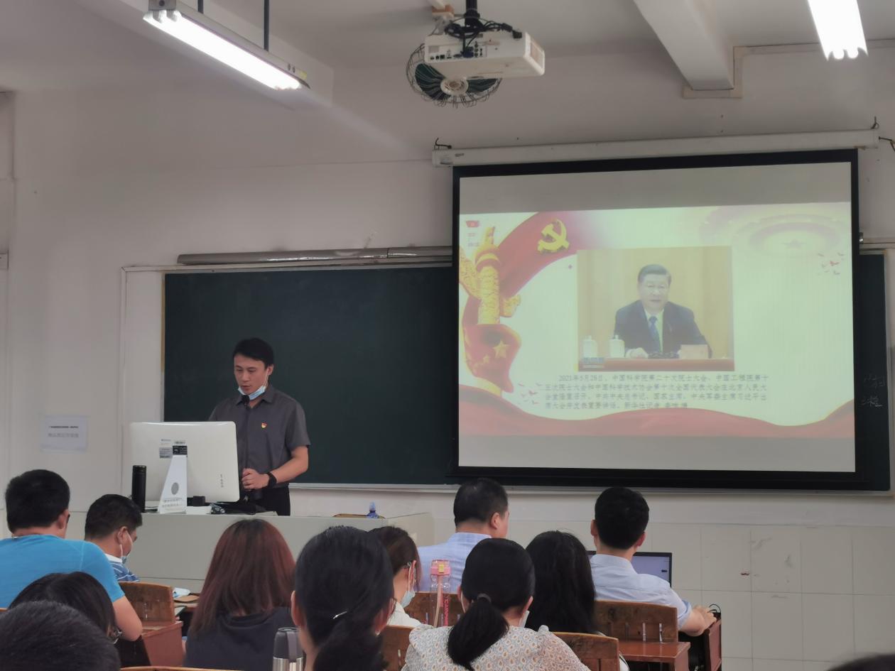 为深入学习贯彻习近平新时代中国特色社会主义思想,根据党史学习教育安排,机电工程学院党总支于6月29日下午2点在教学楼202课室开展党史学习教育,由机电工程学院党总支副书记梁超鹏主讲,机电工程学院全体教职工参加。