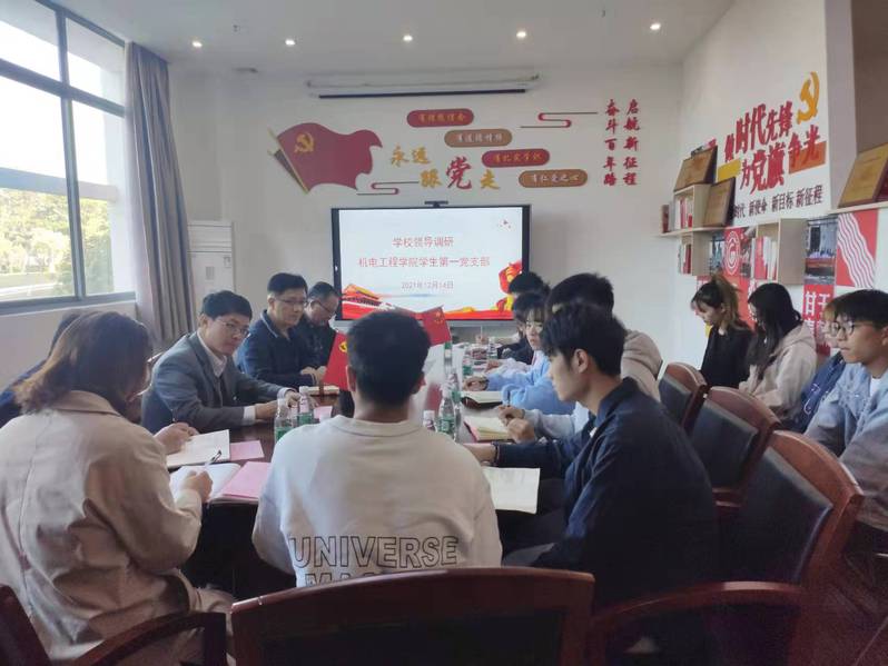 根据省委教育工委党史学习教育第二巡回指导组指示,落实学校领导班子成员调研基层党组织的安排,学校党委委员、副校长刘贻新于12月14日继续走实走深调研机电工程学院学生第一党支部。机电工程学院党总支副书记、院长徐勇军、机电工程学院党总支副书记梁超鹏和机电工程学院学生第一党支部支委、发展对象代表、入党积极分子代表参加会议,会议由机电工程学院党总支书记邵超城主持。