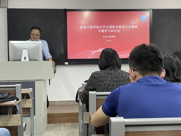 为学习贯彻习近平总书记关于职业教育的重要指示精神和全国职业教育大会精神,推动我院职业教育高质量发展,机电工程学院于3月15日下午两点在天河校区东区204室召开专题学习研讨会。机电工程学院全体教职工参加会议,会议由机电工程学院党总支书记邵超城主持。