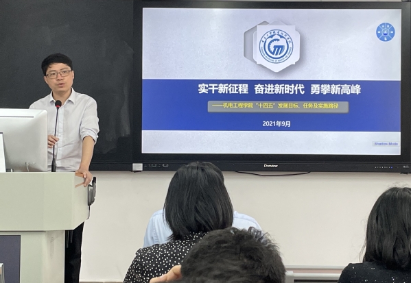 机电工程学院党总支副书记、院长徐勇军从党的建设、人才培养、社会服务、国际合作、产教融合、学生工作六个方面汇报机电工程学院“十四五”规划及新学期工作部署情况。强调新的学期各位教职工要实干、奋进、勇攀高峰,把全国职业教育大会精神落向实处。