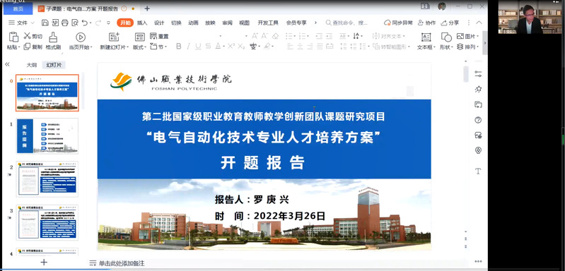 3月26日下午,第二批国家级职业教育教师教学创新团队“高端装备(一)”专业领域课题开题会在我校召开。中国职业技术教育学会副会长丁金昌教授、国家教育行政学院职业教育研究中心主任邢晖教授、国家数控系统工程技术研究中心主任、武汉华中数控股份有限公司董事长陈吉红教授、机械工业教育发展中心主任陈晓明研究员、金华职业技术学院院长梁克东教授组成专家组参加线上会议。我校作为创新团队的牵头单位,吉林电子信息职业技术学院、佛山职业技术学院无锡职业技术学院、重庆工业职业技术学院等10家单位作为成员单位共同承担主课题1项、子课题6项、一般课题2项的课题研究。以上单位课题组成员共计56人参加会议。会议由学院党委副书记赵红同志主持。