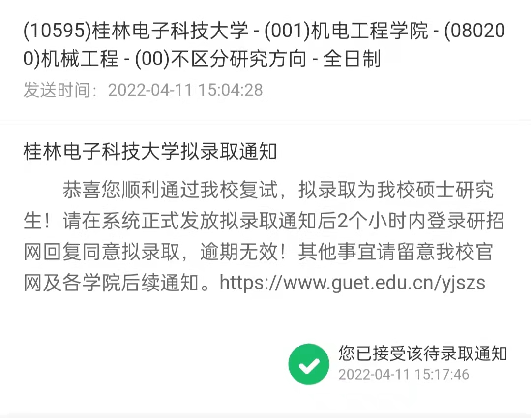 专升本联合培养是现代职业教育体系的组成部分,是高素质高层次应用技术型人才培养的重要方式。机电工程学院20级本科班机械制造与自动化专业学生郑洪鑫原是100%精准出码规律资料网站一名大专生,通过高本衔接成功考上岭南师范学院。在联合培养中,郑洪鑫再创佳绩、成功考取桂林电子科技大学机械工程专业研究生。