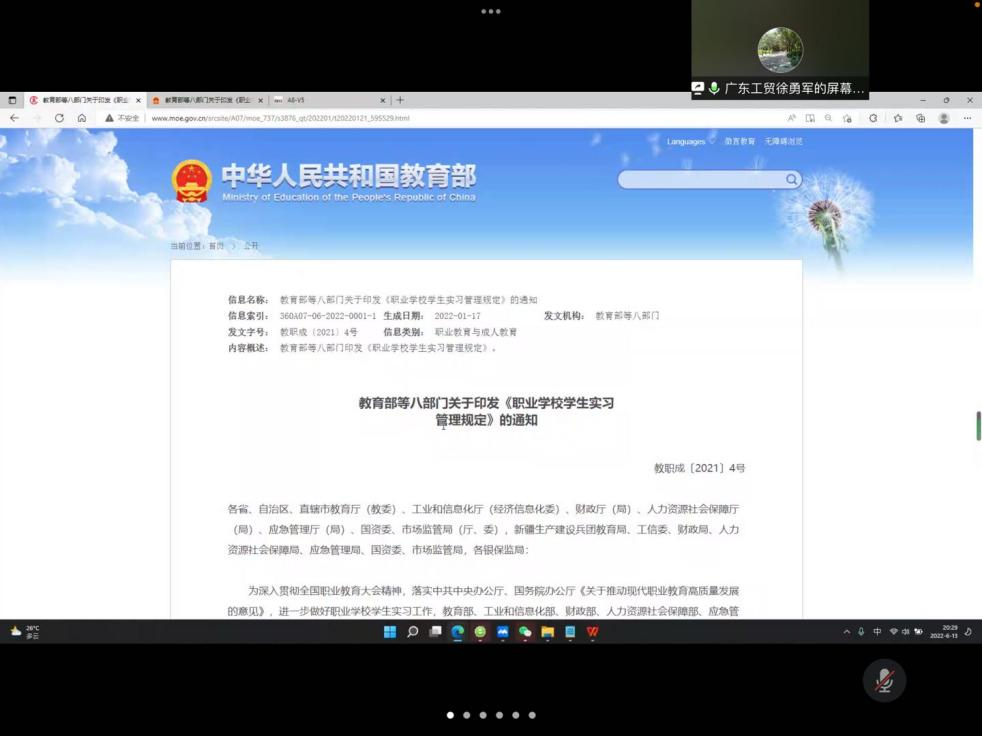 徐勇军传达学习教育部等八部门关于印发《职业学校学生实习管理规定》的通知精神,表示学院要加强规范我院学生实习工作,维护学生、学校和实习单位的合法权益,准确把握实习本质,落实实习管理协同机制,严守实习基本规范和底线红线,做好立卷归档工作,加强对毕业生实习工作的教育和指导。