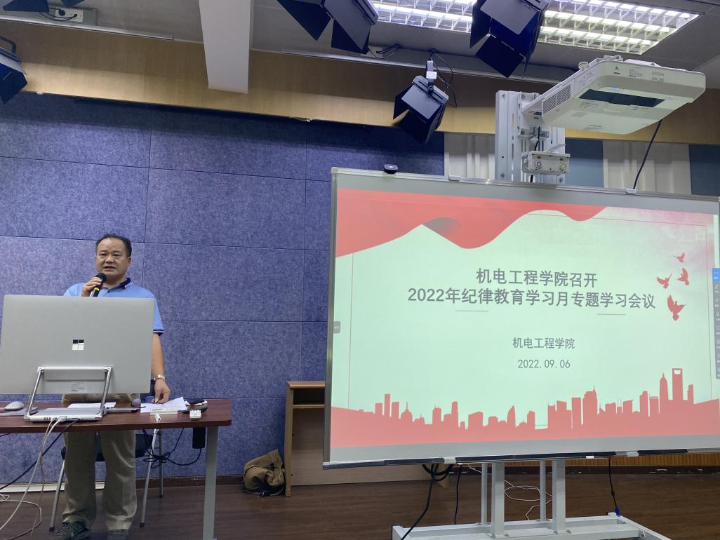 为了进一步增强教师党员的廉洁自律意识和抵御风险能力,机电工程学院党总支于2022年9月7日下午在天河校区西区507室召开以“勇于自我革命,永葆先进纯洁”为主题的专题学习会议。机电工程学院全体党员参加会议,会议由机电工程学院党总支书记邵超城主持,