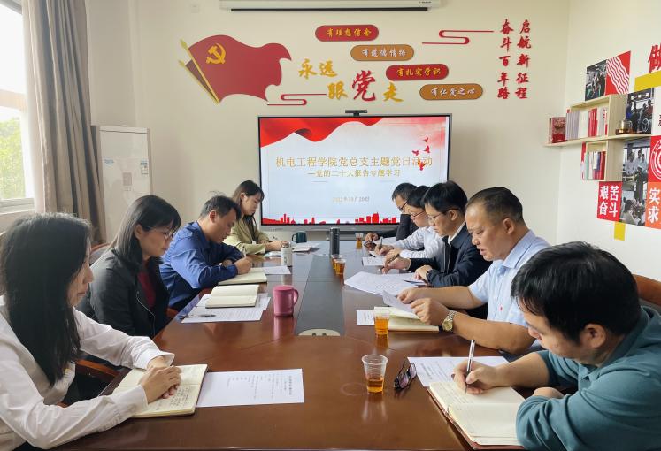 为进一步学习中国共产党第二十次全国代表大会上的报告精神,10月20日上午10点,机电工程学院党总支在白云校区明德楼1区217室开展主题党日活动——党的二十大报告专题学习会议。学校党委委员、副校长刘贻新,机电工程学院党总支全体委员,组织员参加学习。机电工程学院党总支书记邵超城主持会议。