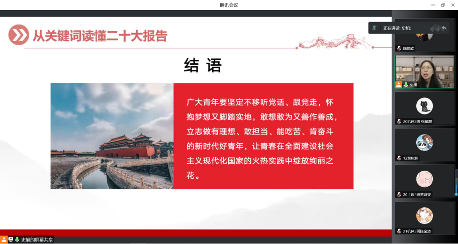 通过本次学习,学生党员及青年们进一步了解党的二十大精神,深刻认识到中国共产党召开第二十次全国代表大会,是进一步指明了党和国家的前进方向,是实现中华民族伟大复兴进程中重要的里程碑,更清楚的知道党高举中国特色社会主义伟大旗帜的伟大意义。广大青年们要以史为鉴,勇担时代赋予的重任,夯实专业基础,精进专业技能,为实现中华民族的伟大复兴添砖加瓦,让青春在全面建设社会主义现代化国家的火热实践中绽放绚丽之花。