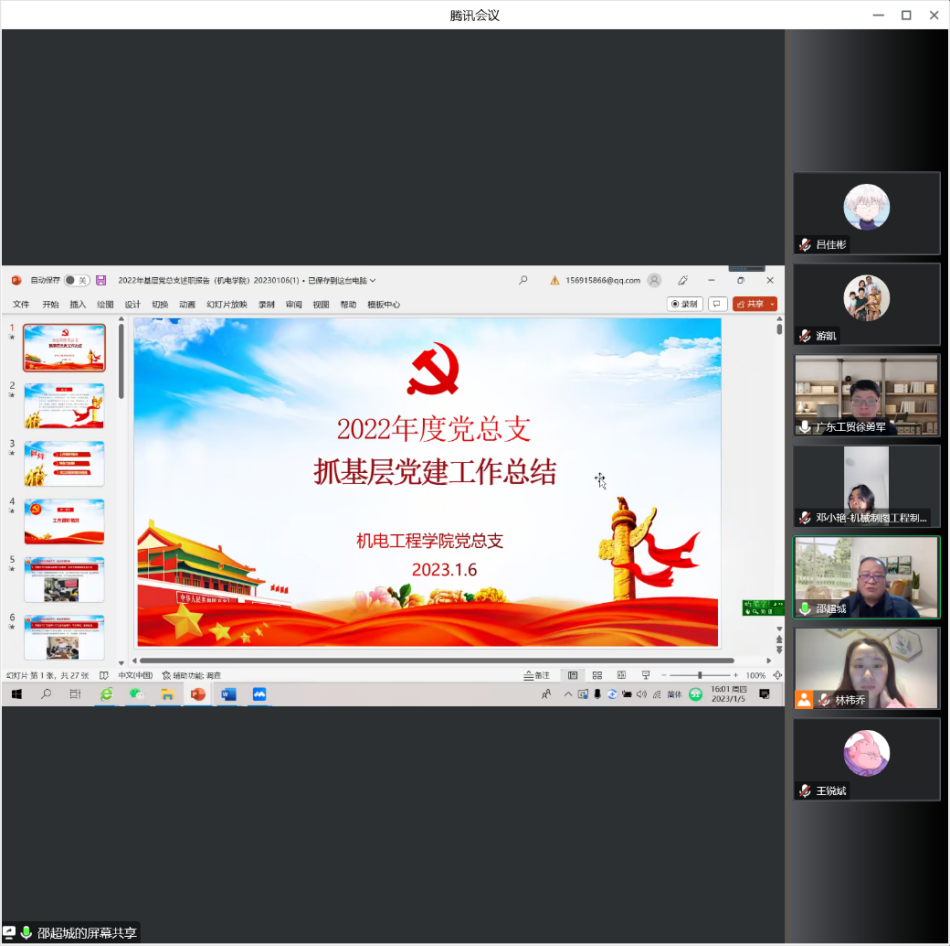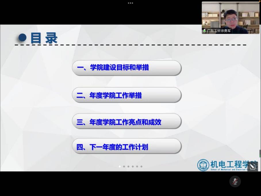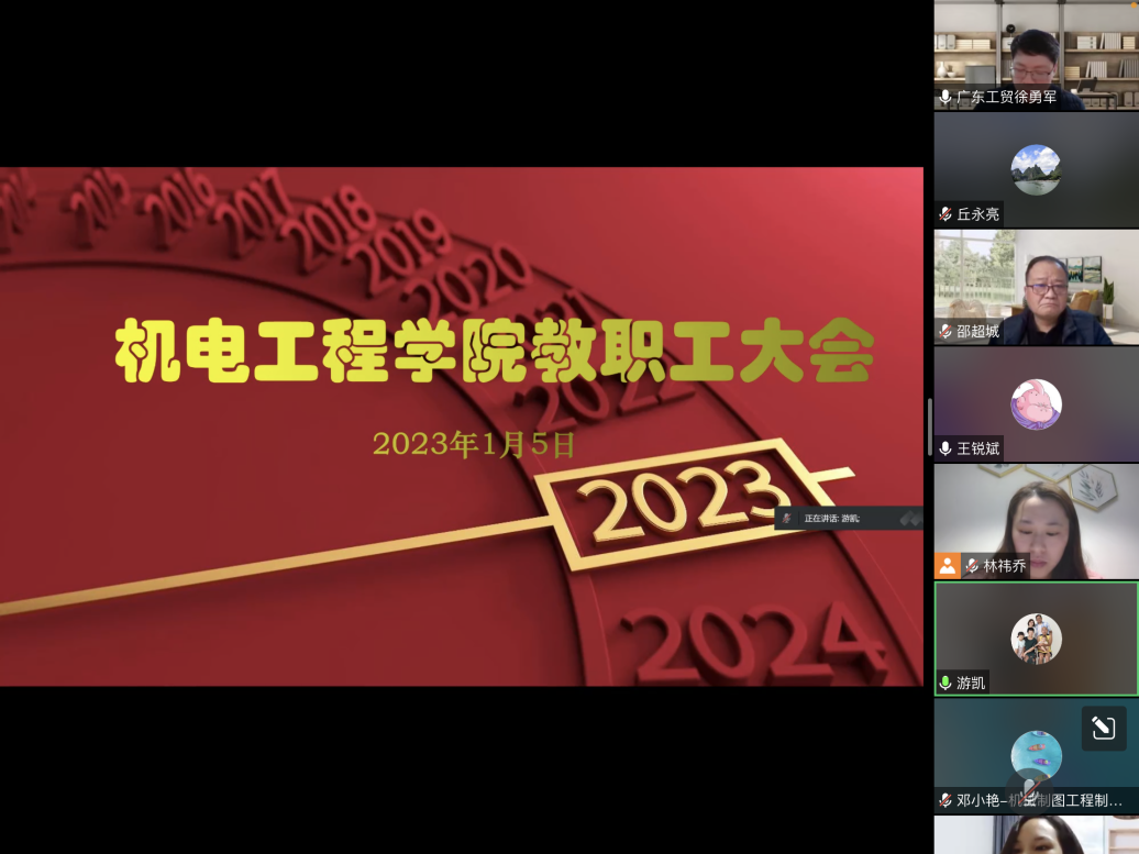 新年伊始,洋溢着元旦浓郁的节日氛围,机电工程学院迎来了本学期的尾声。2023年1月5日下午3点,学院通过线上的形式召开本学期全院教职工大会。全体教职工参加会议,会议由机电工程学院党总支副书记、院长徐勇军主持。