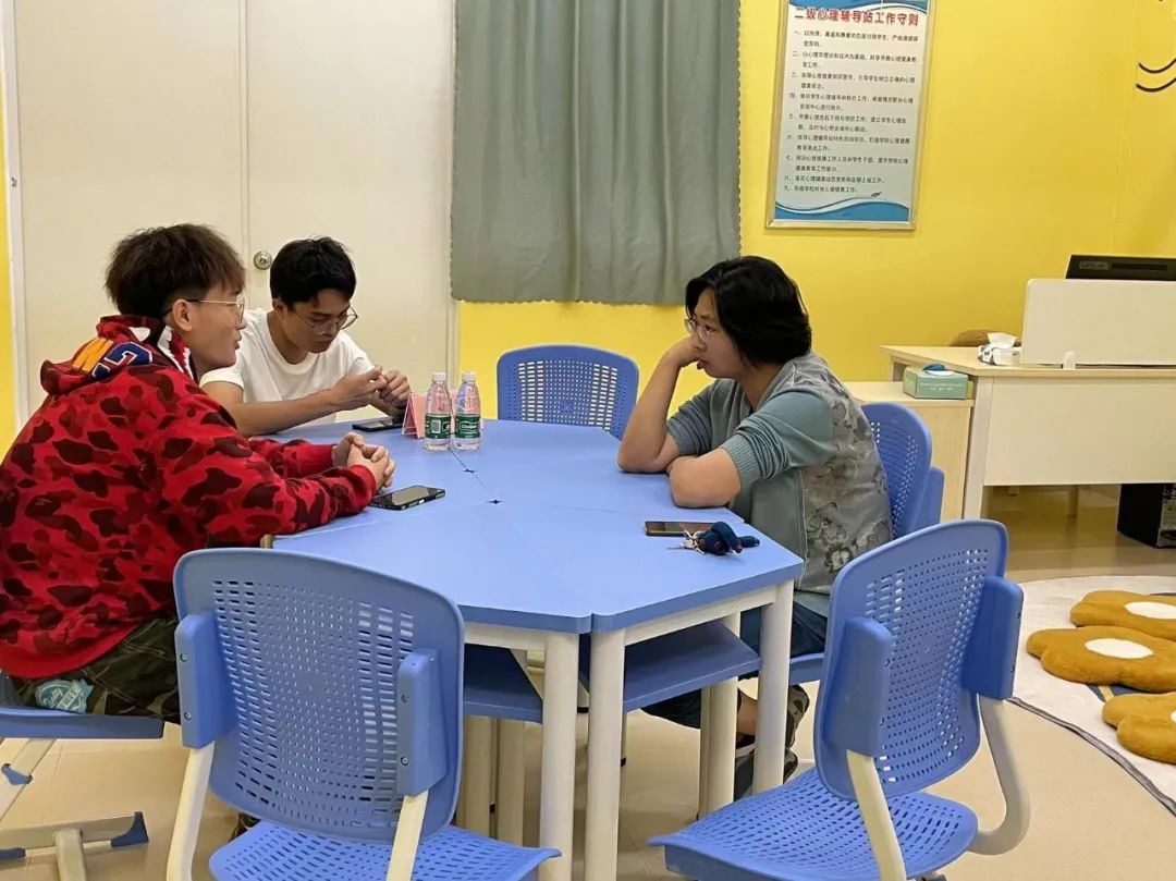 邓小艳在心理辅导站与学生谈心谈话