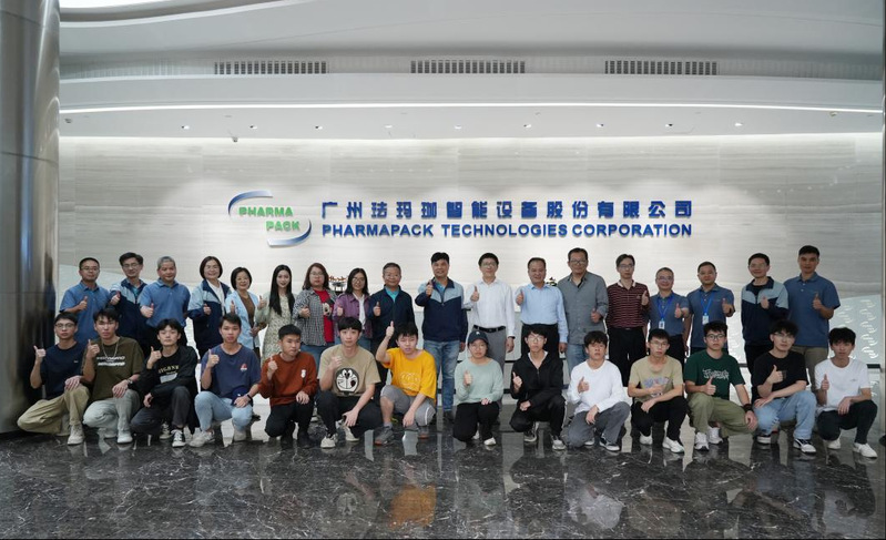 在广州珐玛珈智能设备股份有限公司人资行政总监汤显亮的带领下,我校共20余名师生一同近距离参观了该企业整线生产系统的生产工序、车间环境等。在展厅处,师生们详细听取了数十个系列产品的介绍说明以及包装的多个品类,对产品线有了初步的认识,并亲身体验了企业员工日常工作的工作状态。