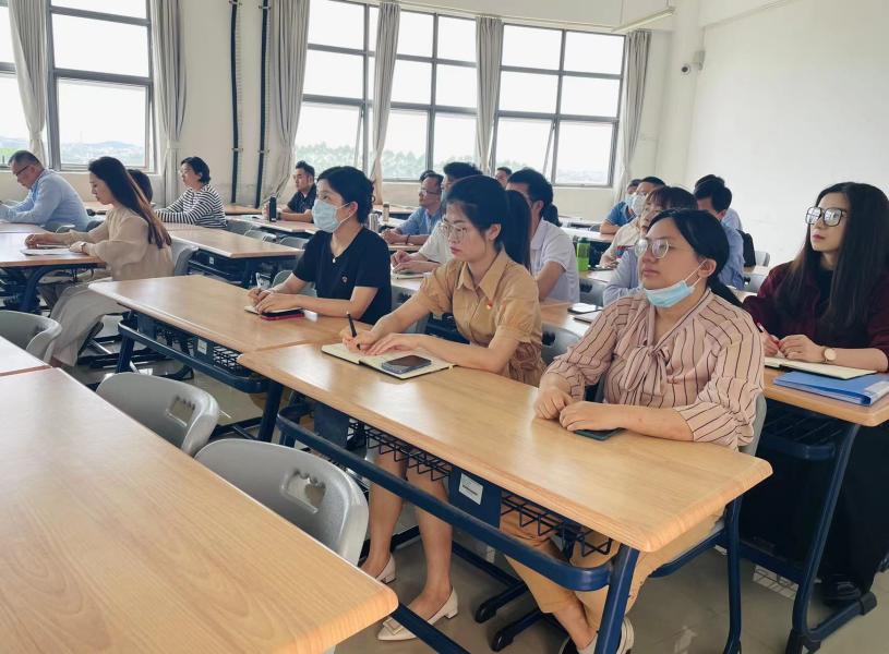 梁超鹏和办公室主任林祎乔分别带领全体党员同志学习贯彻习近平新时代中国特色社会主义思想主题教育工作会议重要讲话精神和习近平总书记视察广东重要讲话重要指示精神。会上,大家结合本人分管工作和我院工作实际发表学习感悟。