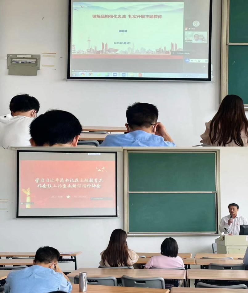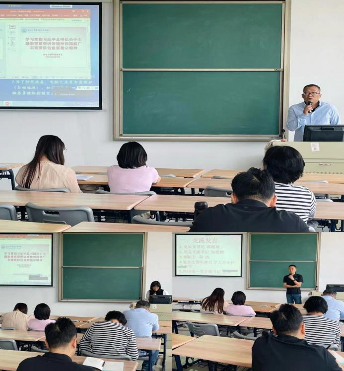机电工程学院党总支书记邵超城以“锤炼品格强化忠诚、扎实开展主题教育”为题发表学习感悟,表示要深刻认识开展主题教育学习的总要求、必要性,抓好着力点,以此次主题教育学习为契机,加强党的创新理论武装,为奋进新征程凝心聚力;梁超鹏以“学习习近平总书记在主题教育工作会议上的重要讲话精神体会”为题发表学习感悟,表示要深刻认识开展此次主题教育学习的重大意义,把“两个确立”、“两个维护”融入血脉化为行动,推动全党积极担当作为,不断开创事业发展新局面。