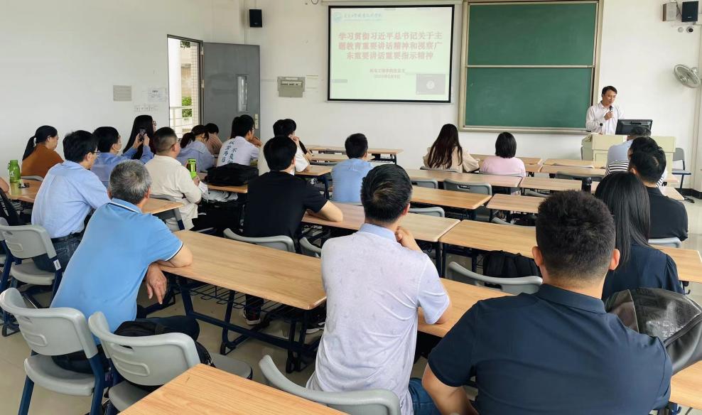 为深入学习贯彻习近平新时代中国特色社会主义思想主题教育工作会议重要讲话精神和习近平总书记视察广东重要讲话重要指示精神,5月9日下午14点,机电工程学院党总支在白云校区1区603室召开主题教育专题学习动员会,机电工程学院全体党员参加会议,会议由机电工程学院党总支副书记梁超鹏主持。