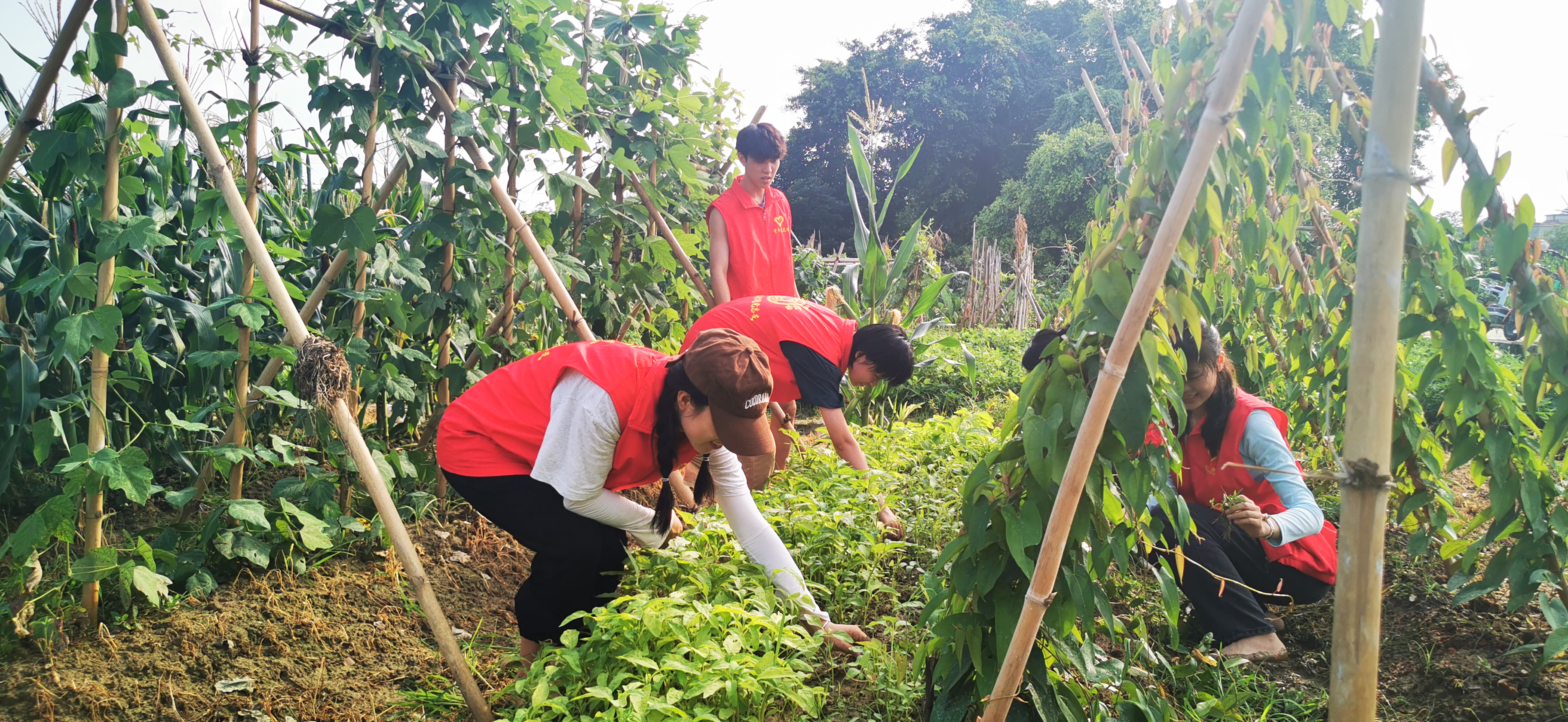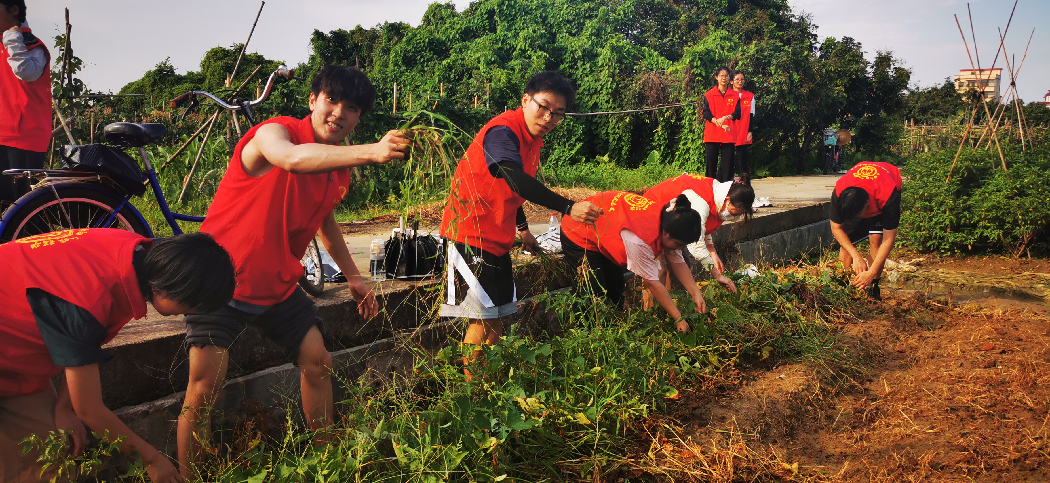 眼下,正是杂草丛生的时节。15:30分,所有人员集合后一同前往湴湖村,同农民阿姨一起除杂草,除虫,所有学生在农民的指导、带领下,齐心协力除好每一根草,田地里一派繁忙的景象。