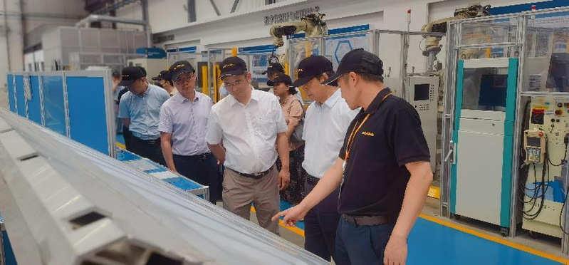 在广州瑞松智能科技有限公司的生产车间,企业负责人介绍了企业生产一线的机器人应用场景和工艺,针对企业岗位的刚需,提出了优化培训体系,促进产教融合,校企合作的合作愿望。