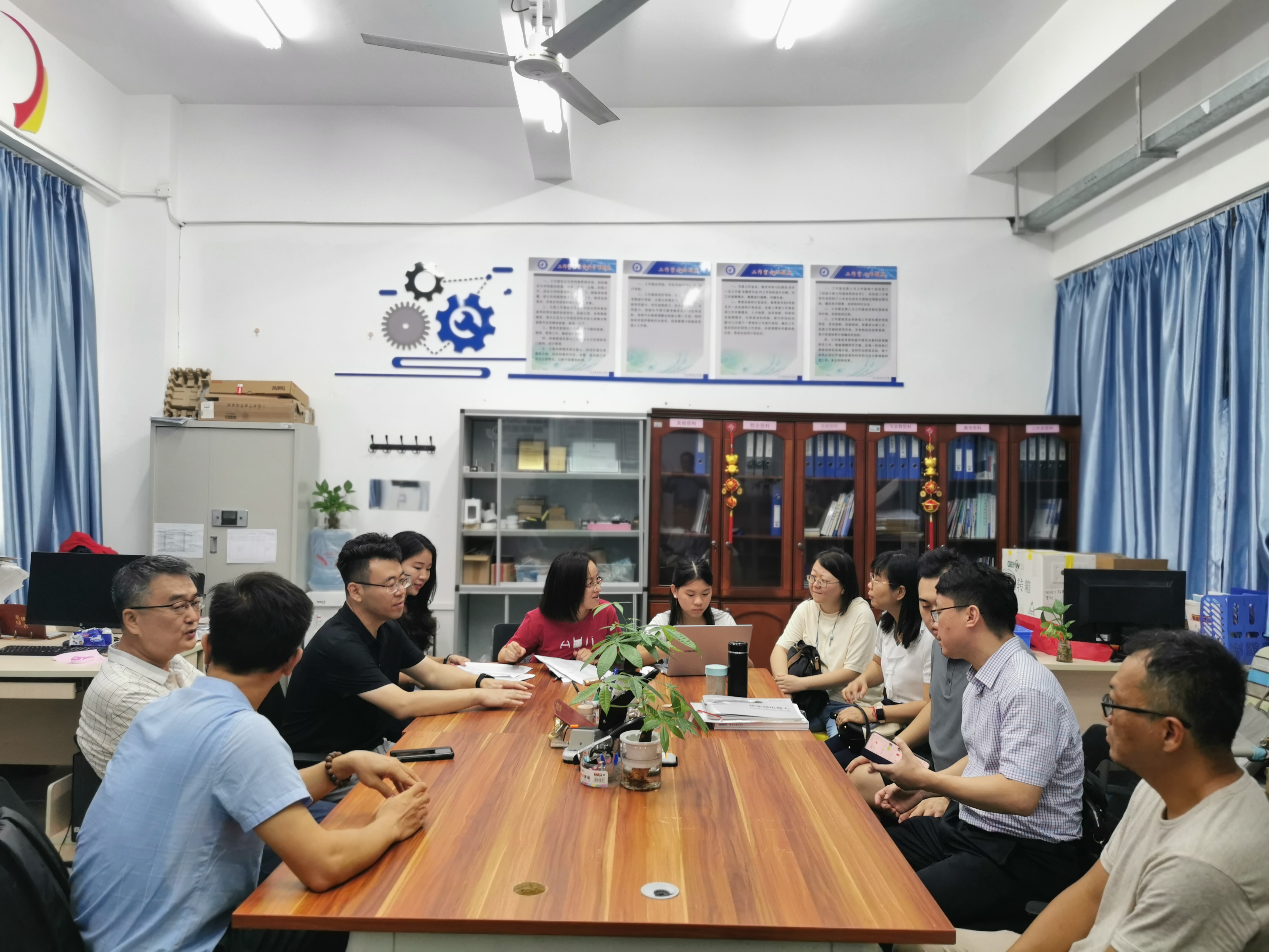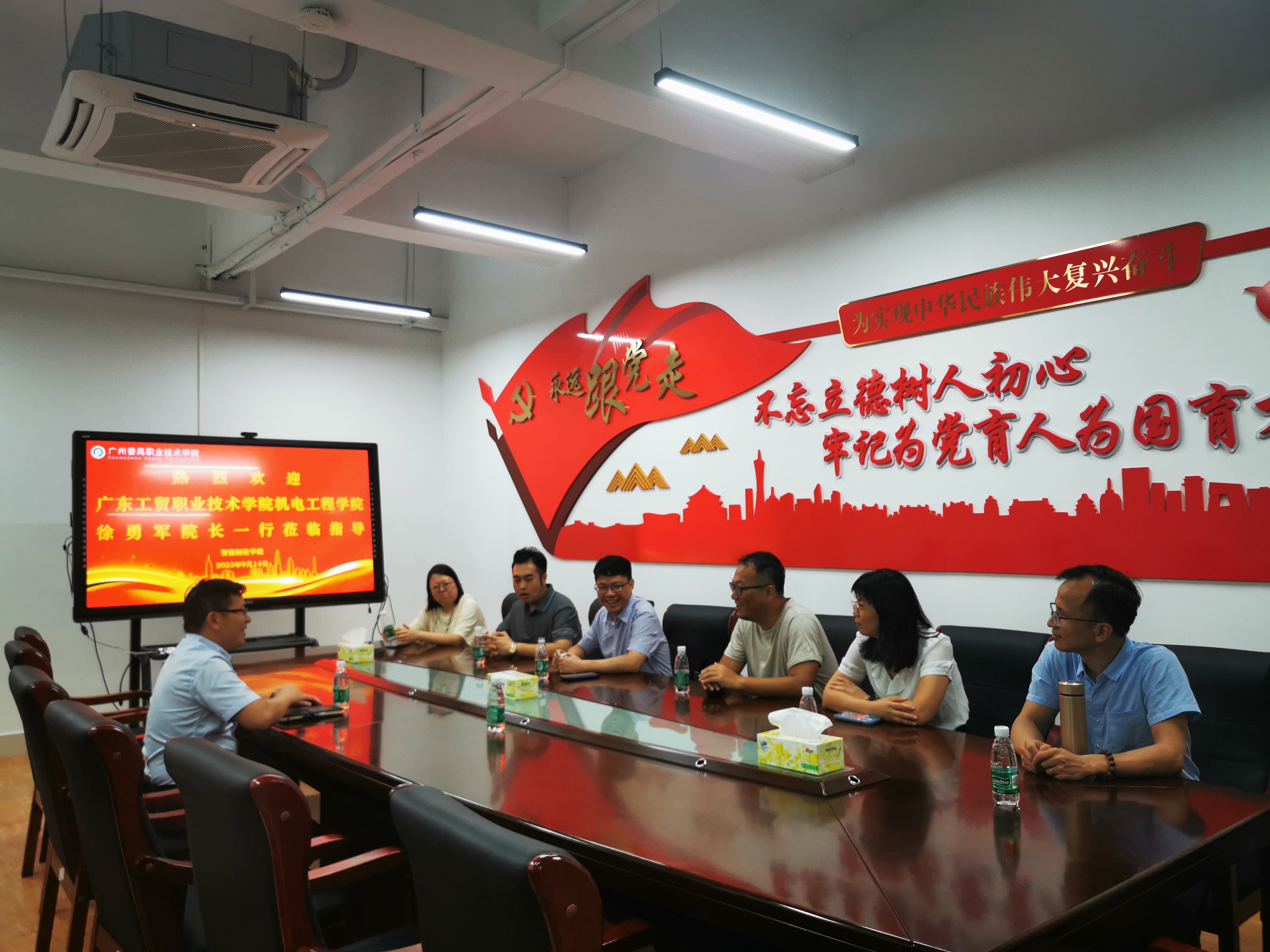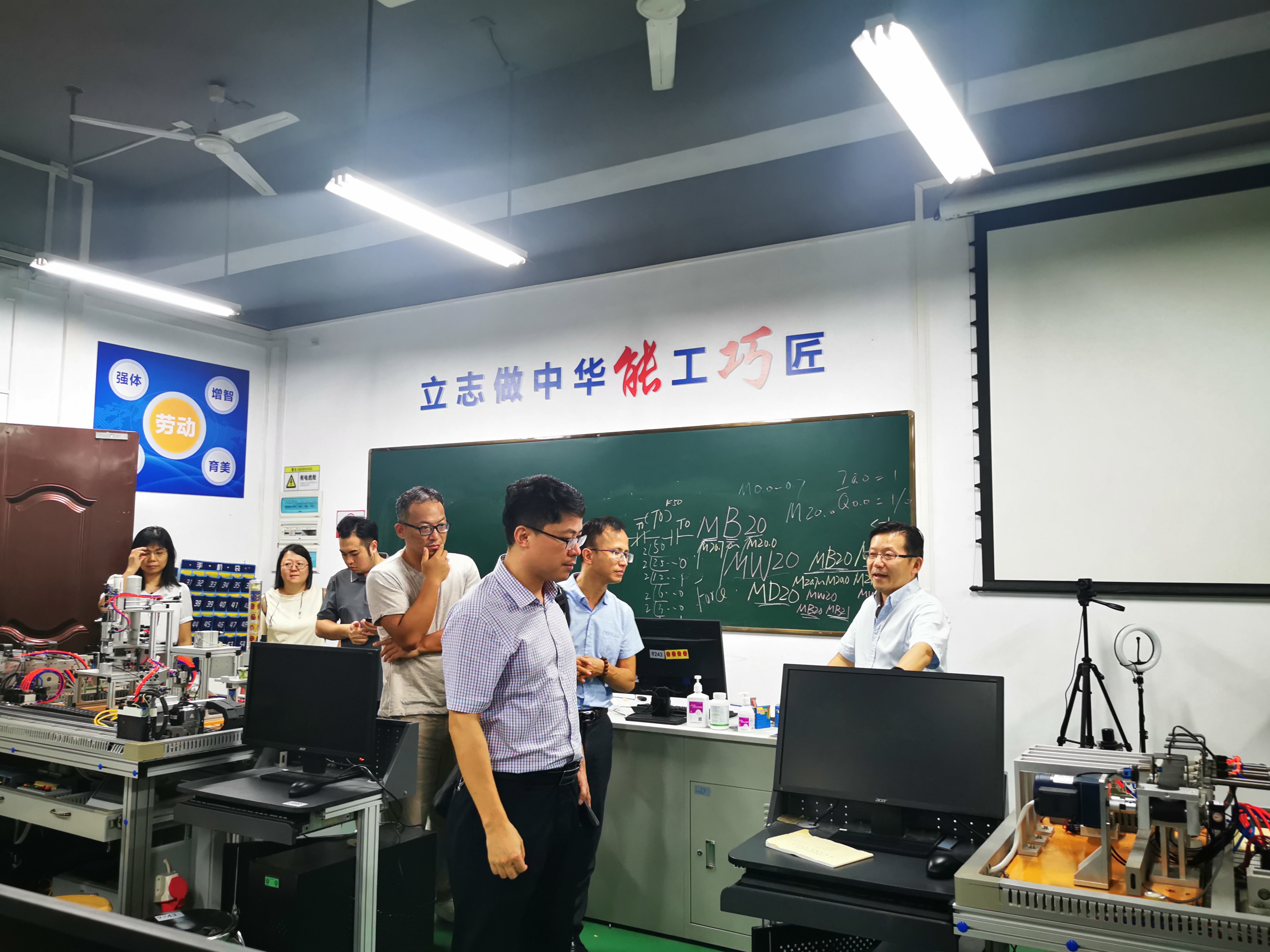 随后调研组赴广州番禺职业技术学院进行实训室建设调研。智能制造学院院长院长卢飞跃带领我们参观实训室,并分享实训室管理模式,对实训室建设给予很多建设性的意见。