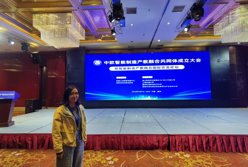 10月19-20日,中欧智能制造产教融合共同体成立大会暨智能制造产教融合国际交流论坛在重庆召开,会议由瑞士联邦乔治费歇尔GF加工方案公司、上海交通大学、重庆机电职业技术大学主办。与会的有国内数十所高校领导、智能制造相关专业教师和行业企业专家,我校机电工程学院熊学慧老师参加了本次会议。