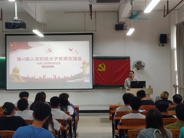 为学习贯彻党的二十大精神,进一步加强第41期入党积极分子党课培训班学员的培养和教育,提高培训班学员的思想觉悟,机电工程学院党总支于11月1日下午14时在明德楼2-202开展党课心得交流会,本次交流会由党课指导老师李慧颖主持,全体41期入党积极分子培训班学员参会。