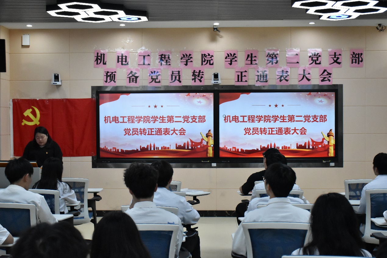 2024年6月21日上午11时,机电工程学院学生第二党支部在明德楼一区316召开预备党员转正通表大会,对刘曼纯等9名预备党员的转正申请进行讨论。出席本次会议的有机电工程学院学生第二党支部书记吴文婷同志、纪检委员王锐斌同志、组织委员邵盼盼同志、教师党员刘洋曦文同志以及全体学生党员。
