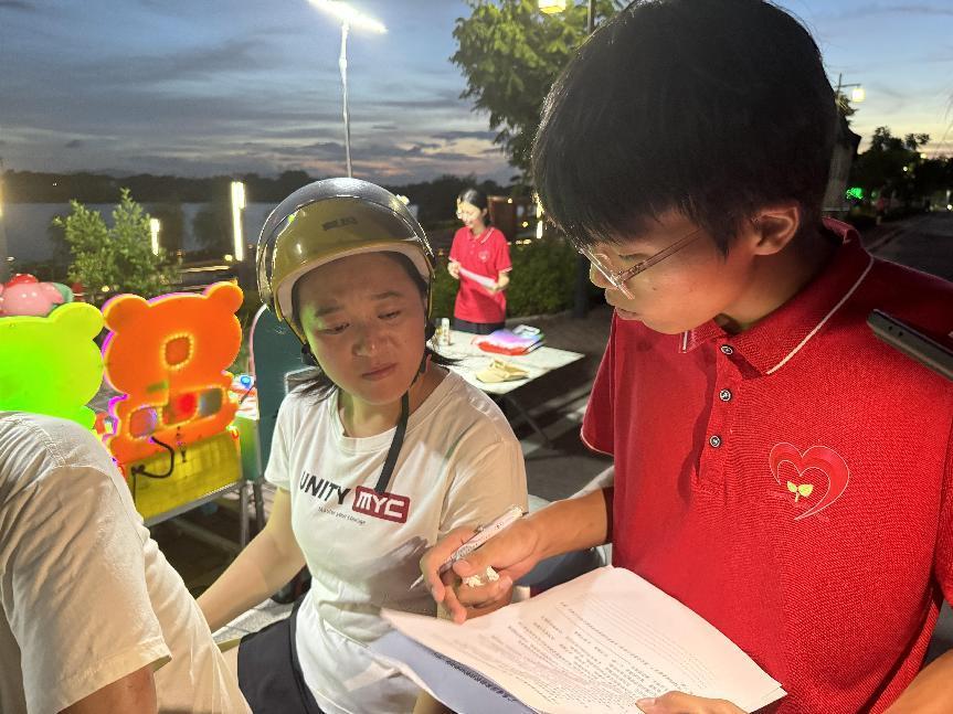 红星突击队队员们迅速融入这繁忙的场景中,通过在市场设立咨询台、发放宣传手册和调查问卷,向过往的村民们普及国家资助和助学贷款相关知识。红星突击队员们详细介绍了这些利民政策如何为农村学子提供经济支持,助力他们通过教育改变命运,实现教育梦想。