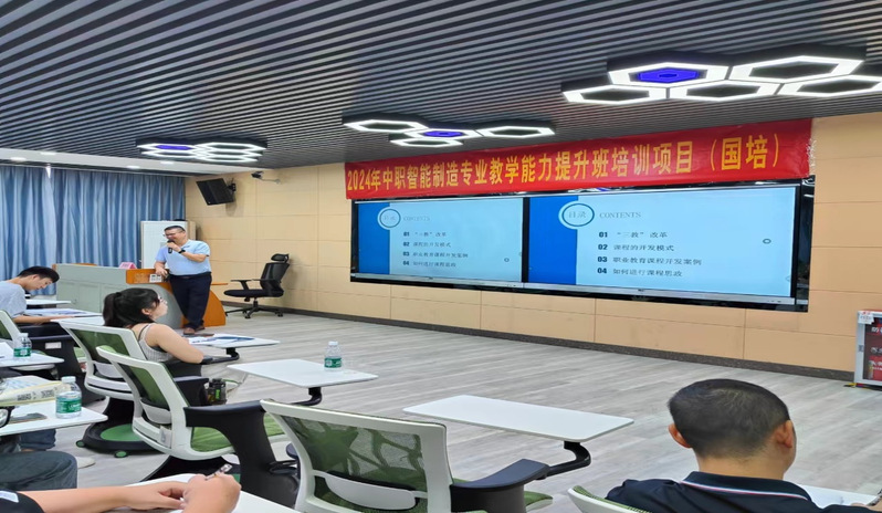 “智能制造专业教学能力提升”项目培训对象来自于广东省惠州市12中职学校43名教师,主要从事数控技术、模具设计与制造、机电一体化、智能制造、工业机器人技术应用等专业课程的骨干教师。