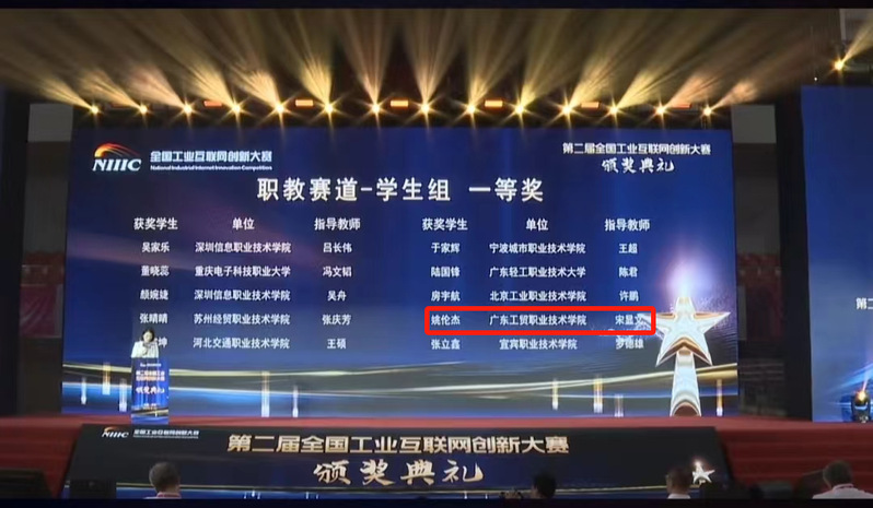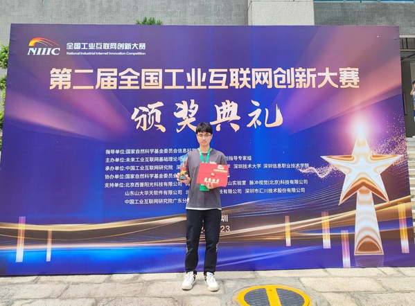 8月23日,由国家自然科学基金委员会信息科学部指导,未来工业互联网基础理论与关键技术重大研究计划指导专家组主办,中国工业互联网研究院、深圳大学、哈尔滨工业大学、深圳技术大学和深圳信息职业技术学院联合承办的2024第二届全国工业互联网创新大赛总决赛在深圳圆满落幕。经过初赛阶段的专业遴选,共有173支队伍入围决赛。在职教赛道决赛中,我校机电工程学院师生在学校领导的鼎力支持和学院领导的精心组织下,克服种种困难, 放弃假期休息, 根据科学而系统的备赛方案,积极备赛一个多月,最终姚伦杰同学在赛场上沉着冷静,赛出风格,赛出水平,继续发扬工贸人卓越奋进,不畏艰苦的精神风貌,荣获学生组国赛一等奖好成绩(指导教师:宋显文,总教练:邵超城)。
