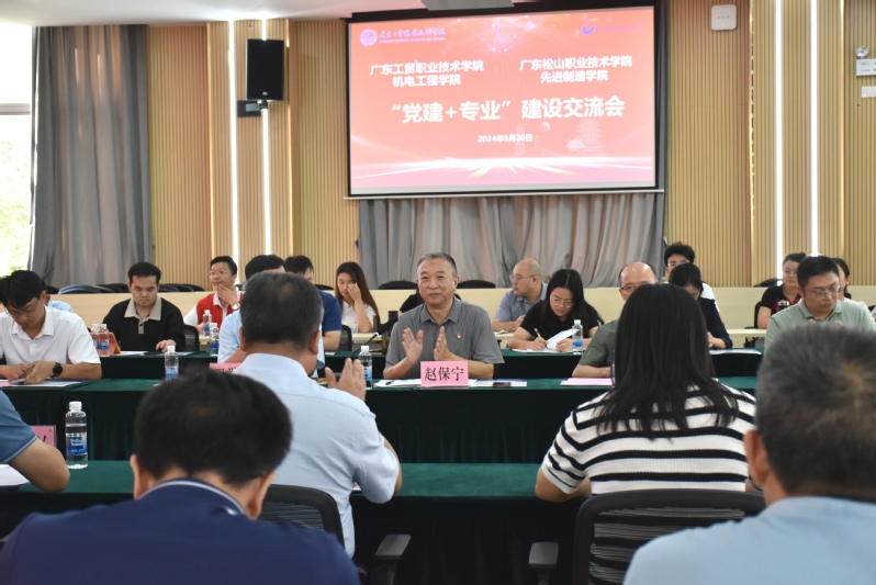 交流会上,广东松山职业技术学院先进制造学院党总支书记赵保宁致欢迎辞。双方党总支书记邵超城、赵保宁分别介绍各自党组织基本情况、党建工作开展情况及特色做法。双方院长罗庚兴、田学锋分别介绍各学院专业设置、课程建设、师资团队等方面情况。双方教师党支部书记原波、曹智梅就“双带头人”教师党支部书记工作室和“全国党建工作样板党支部”建设进行经验交流。