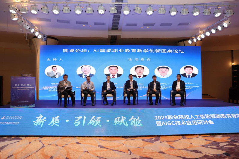 徐勇军副校长(右二)参加“AI赋能职业教育教学创新”圆桌论坛