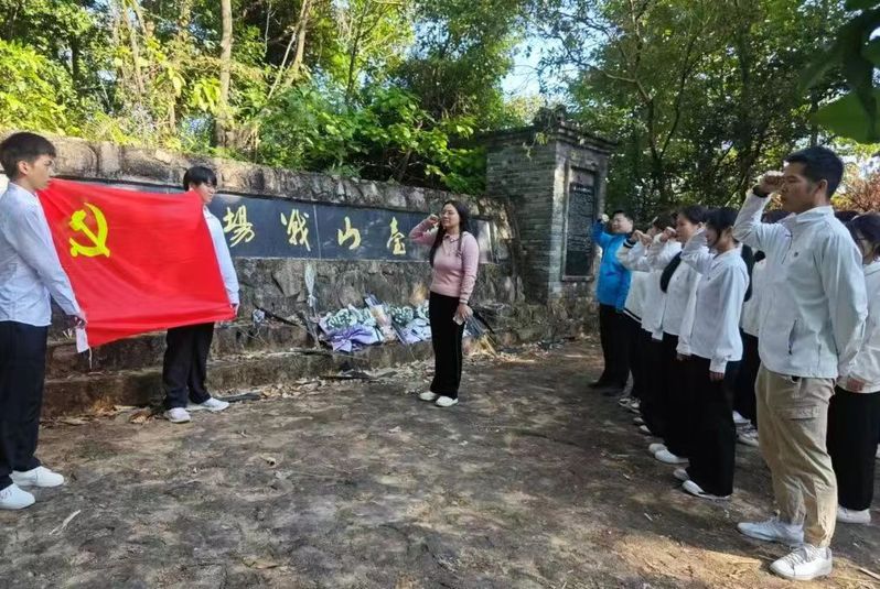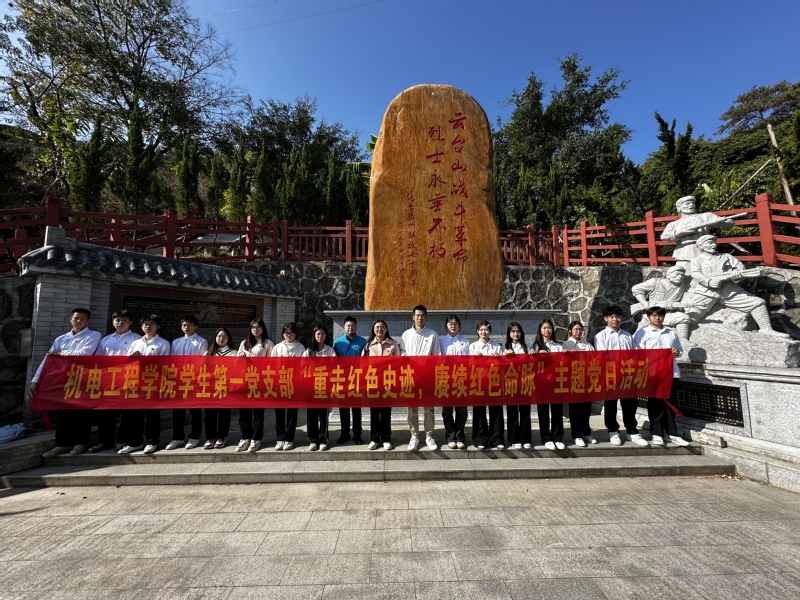 为深入学习贯彻党的二十届三中全会精神,弘扬革命文化,加强党员党性教育和革命传统教育,以高质量的党建活动加强新时代爱国主义教育,凝聚中国式现代化建设磅礴伟力。2024年12月13日下午,机电工程学院学生第一党支部组织开展“重走红色史迹,赓续红色命脉”主题党日活动。此次活动由机电工程学院学生第一党支部书记李慧颖领队,两名教师党员和十七名学生党员共同前往广州从化云台山战斗遗址实地参观学习。