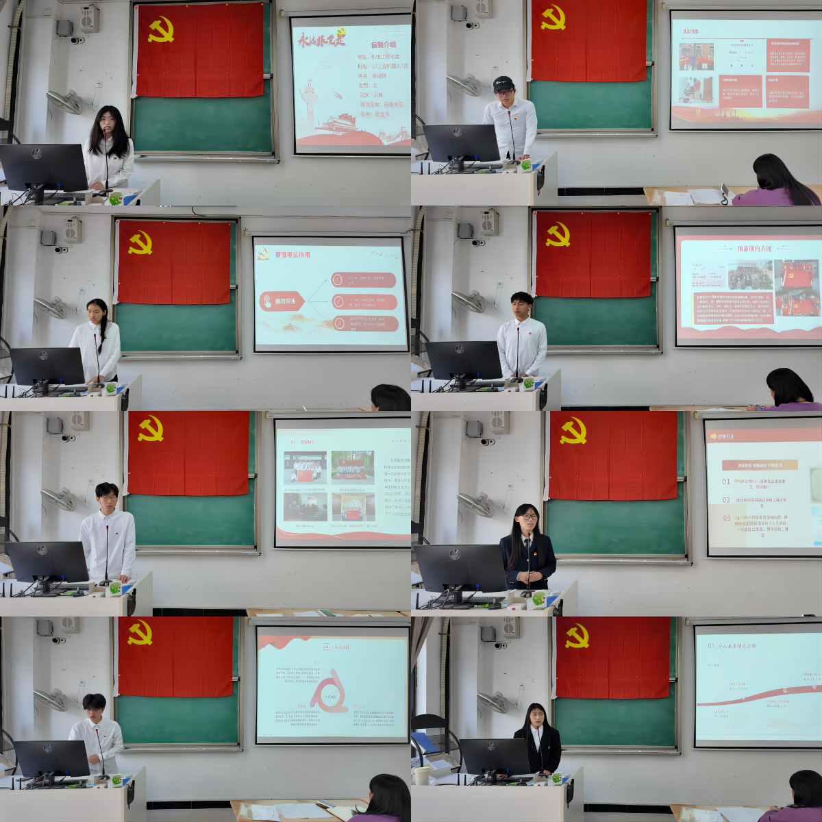 第二个议题是对彭依雨等8名预备党员的转正申请进行讨论。会上,吴文婷同志清点到场人数,并宣读本次大会的各项议程。伴随着《国际歌》的奏响,大会拉开序幕。在庄严的党旗下,8名预备党员就自己成为预备党员这一年期间的思想、学习、工作、生活等各方面进行总结性汇报,并进行答辩。他们表明自己会时刻以一名优秀党员的标准严格要求自己,牢记入党时的誓言,在思想上和行动上紧跟党的步伐,争做优秀共产党员。