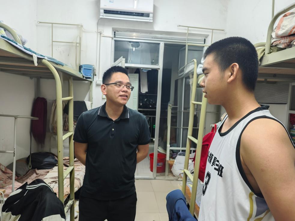 走访过程中,蔡少德与同学们亲切交谈,详细询问了同学们的学业进展、生活适应情况及未来规划,重点了解宿舍设施、环境卫生、安全保障等实际问题。他特别关注毕业生就业动态,鼓励低年级学生夯实专业基础,并叮嘱同学们要增强安全意识,营造健康向上的宿舍文化氛围。