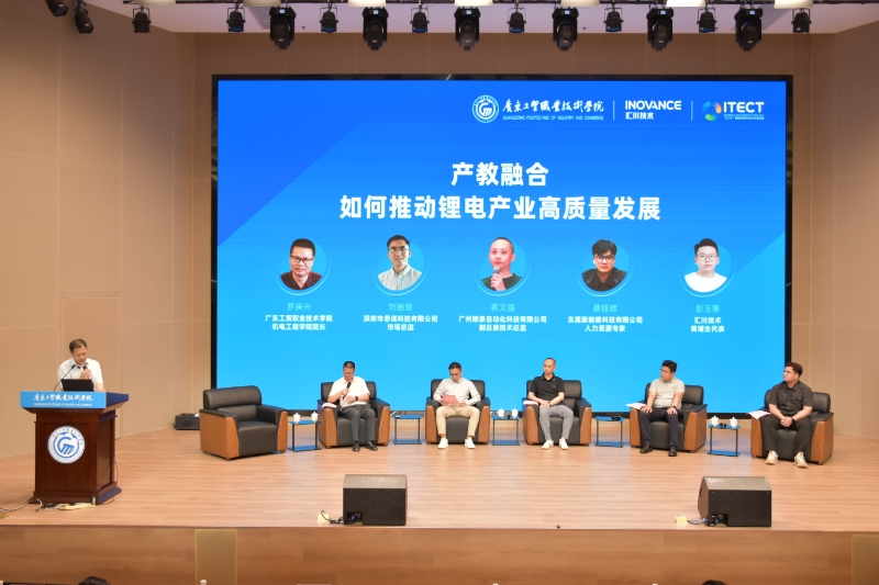 圆桌论坛环节,机电工程学院院长罗庚兴与企业代表围绕校企间如何深度合作实现产教融合高质量落地为地方经济贡献力量、校企间通过什么样的合作模式推动产业实现中国式现代化发展、当前学生毕业能力与企业岗位能力要求不匹配的原因等议题展开深入交流,嘉宾们结合实践案例提出建设性意见,现场互动热烈,为产教融合提供可落地的解决方案。论坛特别邀请汇川技术专家陈文哲作“锂电行业介绍及汇川领先解决方案”专题报告,为我校智能制造相关专业建设提供了前沿技术参考。