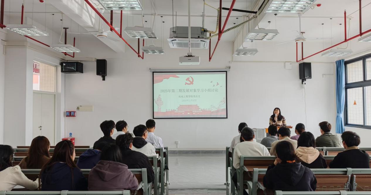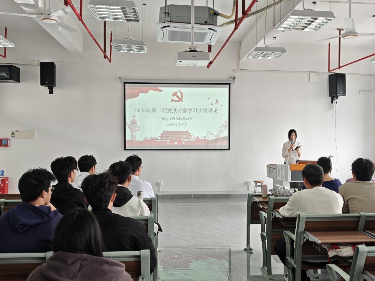 为推动发展对象党课培训班学员深入学习贯彻党的二十届四中全会精神,切实提高思想觉悟,进一步明确入党初心与使命,机电工程学院党总支于2025年11月27日下午,在致知楼的803组织开展学员思想交流分享会。本次讨论会由组织员李慧颖主持,全体培训班学员参会。