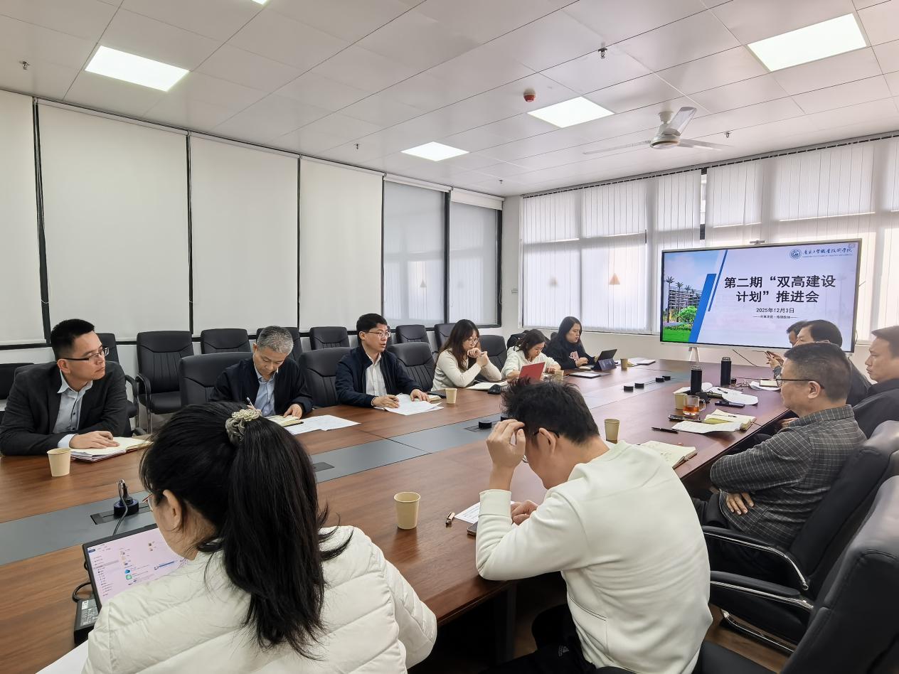 2025年12月3日,学校第二期“双高建设计划”推进会议在致知楼1A04室如期举行。学校党委委员、副校长徐勇军出席会议并讲话,高职教育研究与发展中心主任速云中,机电工程学院党总支书记梁超鹏、院长罗庚兴、党总支副书记蔡少德、副院长赵俊峰及刘益标,高职教育研究与发展中心项目专班成员、十大建设任务组长等相关人员参加会议,共同为学校“双高建设计划”的深入推进凝聚共识、部署任务。