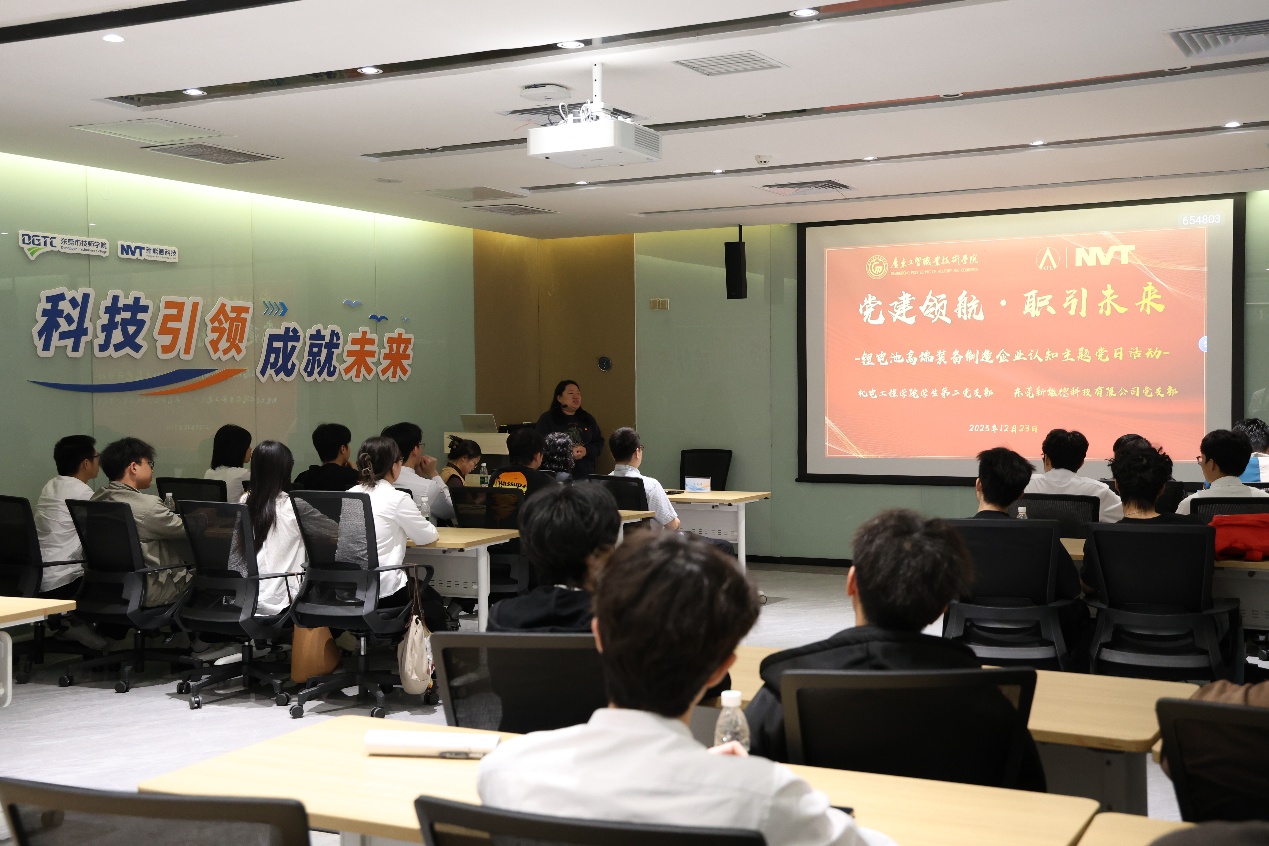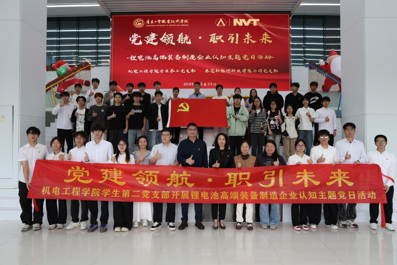 为深入学习贯彻习近平总书记关于科技创新与人才培养的重要指示精神,深化校企协同育人机制,推动党建工作与专业学习深度融合,服务学院“双高”建设目标,引导学生走进产业一线、增强对高端装备制造行业的实践认知。12月23日,机电工程学院学生第二党支部赴东莞新能德科技有限公司,开展锂电池高端装备制造企业认知主题党日活动。本次活动由党支部书记吴文婷带队,教师第一党支部党员教师曹恬、侯聪玲,以及学生党员和入党积极分子共计40余人共同参加。