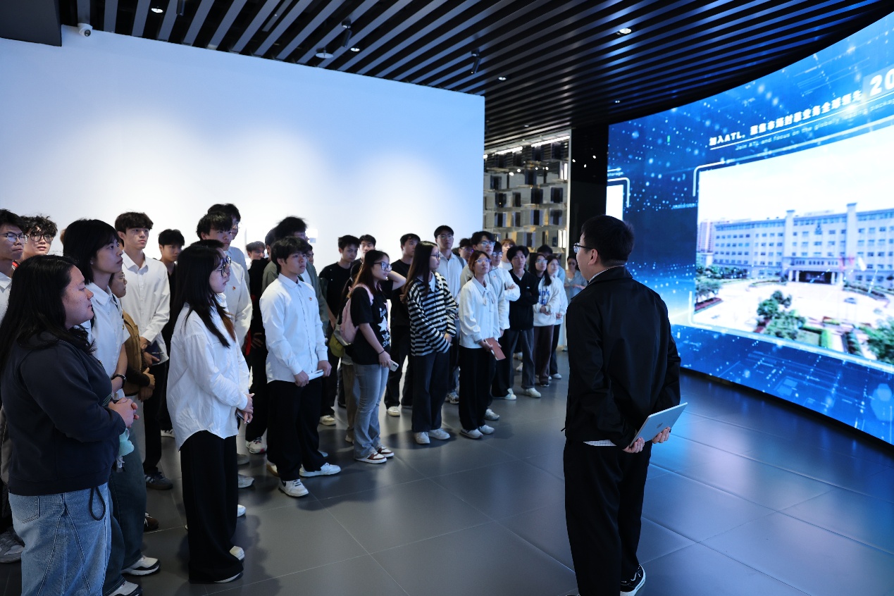 随后,师生严格遵守安全规范,走进锂电池智能化生产车间进行实地参观。车间内自动化产线高速运转,机械臂精准完成上下料、焊接等作业,智能管控系统大屏实时跳动着各项生产数据。从电芯组装、焊接、检测到封装,工作人员耐心讲解每一道工序的技术要点与装备原理。同学们既深刻感受到智能制造的魅力,也对“专业所学即所用”有了更真切的体会。