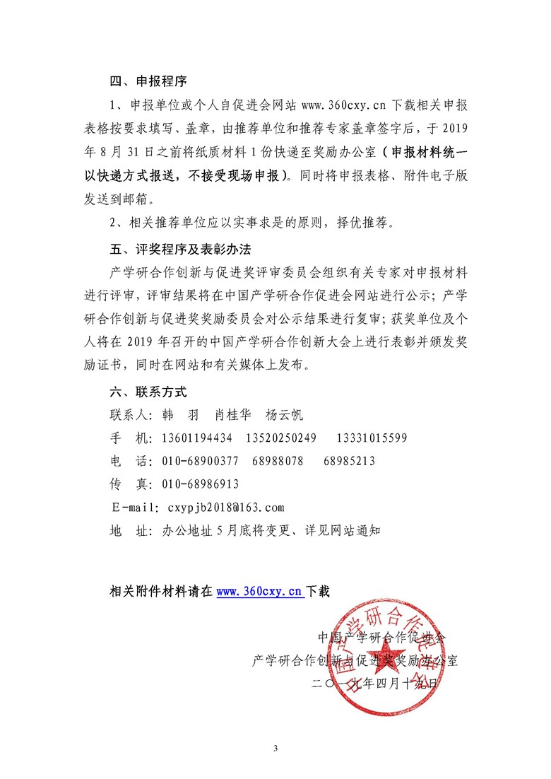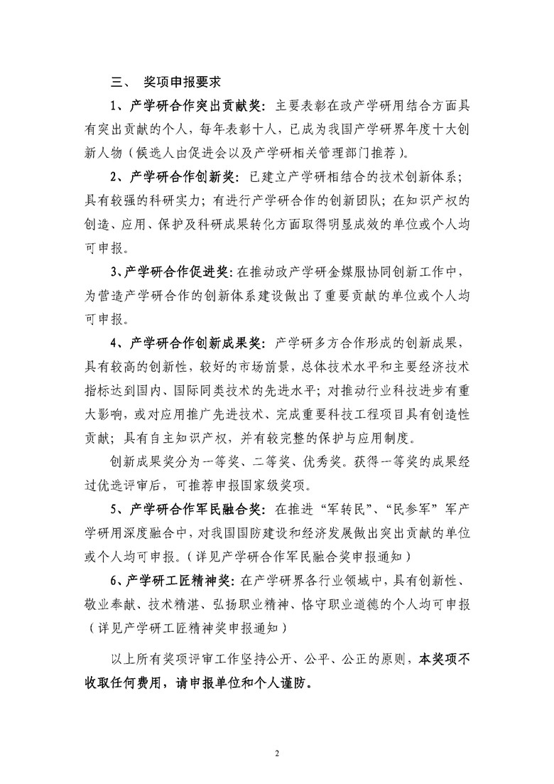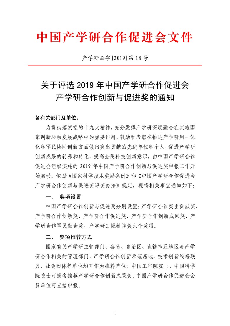 关于评选2019年中国产学研合作促进会产学研合作创新与促进奖的通知!