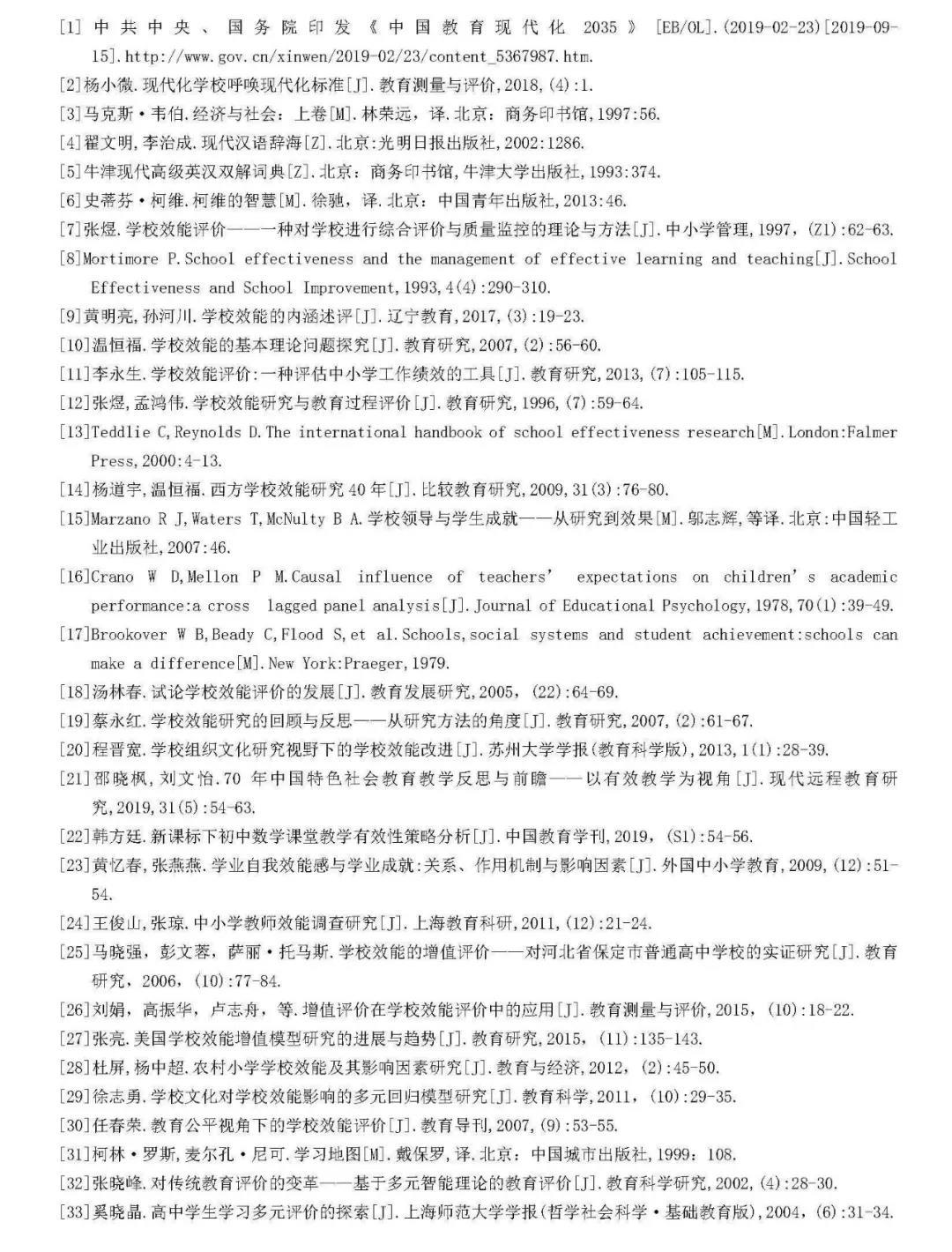 我国对学校效能的研究开始时间较晚,在起步阶段大多是对国外研究成果的梳理和分析,旨在介绍国外学校效能研究的进展和成果。如有研究者梳理了国外学校效能研究的演进脉络和主要成果,并对未来发展趋势进行展望。[18]有的以研究方法为切入口对学校效能研究进行了回顾和总结,认为已有研究存在研究结论被过度推广、缺乏理论基础、忽视理论建构等问题。[19]进入21世纪以来,我国关于学校效能的研究进入快速增长时期,学校效能这一研究主题受到更多学者的关注。我国学校效能研究进入繁盛期是在2005年首届国际教学效能与学校改进大会召开之后,这一阶段以探索构建本土化的学校效能理论框架为主要内容。同时,还有很多研究者关注到了学校效能的影响因素这一问题,比如,有论者探讨了组织文化研究视野下的学校效能改进,从学校组织文化的维度、结构、特征等不同向度论述了其对学校效能改进的影响。[20]随着研究者对学校效能内涵理解的不断加深,研究内容从学校效能的理论研究扩展到学校改进的实践应用,研究更加关注学校组织文化、领导形态等因素对学校效能的影响。当然,国内关于学校效能的研究也还存在如下一些问题。