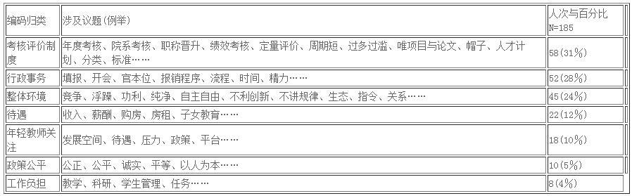 表1 开放性题项:“如果您对目前高校学术环境有何意见或建议,请写下”