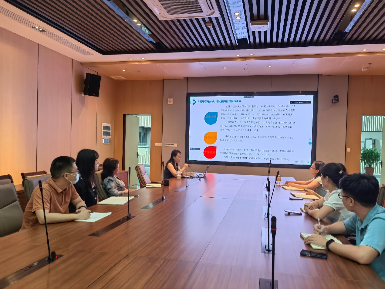 为深入开展主题教育,2023年6月6日,人事培训直属党支部通过线上+线下的形式召开了支部大会。会议由支部书记杨慧同志主持,全体成员认真学习领会习近平总书记在学习贯彻习近平新时代中国特色社会主义思想主题教育工作会议上的重要讲话精神,切实把思想和行动统一到习近平总书记重要讲话精神和党中央决策部署上来,推动主题教育走深走实、推动学校高质量发展取得实效。 首先,支部书记杨慧同志带领大家认真学习《习近平主持二十届中共中央政治局第五次集体学习并发表重要讲话》的视频,支部同志开展了交流讨论,依次做学习体会发言。蒋雅欣表示“作为职业技术教育工作者中的一员,我们更应明确自己肩负的重仼,不断学习,提升自身素质,为国家产业发展升级换代培养一大批优秀的技术人才、能工巧匠、国工匠。不负党和总书记的殷切期盼。”朱淑瑜表示“人事处作为负责统筹学校师资队伍建设的部门,要响应党的号召,高质量做好本职工作,提升学校的教师队伍水平,为党的教育事业贡献力量。”张庆庆表示“新征程中,党员干部要深刻领悟教育、科技、人才的重要意义。建设教育强国、科技强国、人才强国具有内在一致性和相互支撑性,要把三者有机结合起来、一体统筹推进,形成推动高质量发展的倍增效应。”古玥表示“学历继续教育和职业培训是职场人获得自我提升非常重要的组成部分,也是终身学习非常重要的组成模块。而这正是我们培训学院的工作职责,也是职业自豪感的重要来源。”黄世仿表示“继续教育与培训学院深受鼓舞,方向明确:以实施省级继续教育质量提升工程为抓手,致力打造和健全行业服务、社区教育、师资培训、成人教育、对口支援五位一体的服务体系,创建省级示范培训基地,联合行业企业大力开展新技术技能培训,高质量举办面向职业院校教师素质提高计划国培项目的师资培训,建设好5G+终生学习平台”。