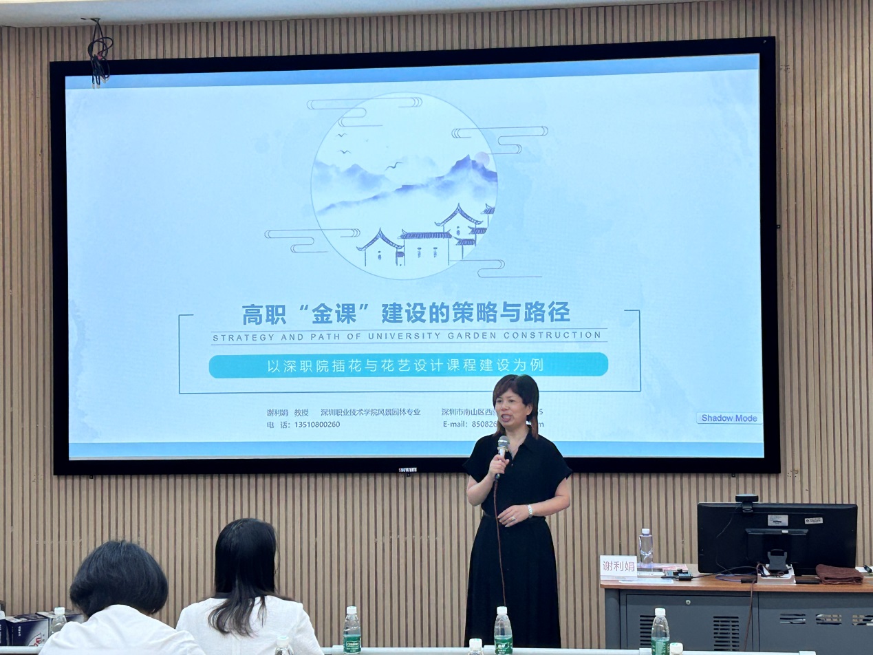 建筑工程学院院长、国际高级花艺设计师、国家级精品课程主持人谢利娟教授作“高职金课建设的策略与路径”讲座