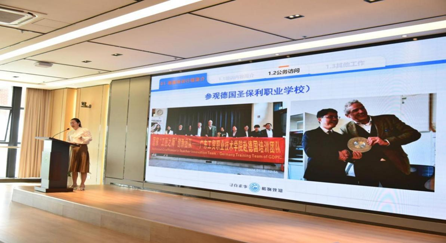 教师发展中心主任杨慧主持会议 会议伊始,曹晓曼老师代表电气自动化技术专业国家教师教学创新团队向参会人员详细介绍了德国职业教育的背景、体系和特色,尤其是作为德国职业教育一大亮点的双元制职业教育模式。曹老师表示,通过此次为期21天的培训,团队成员对德国职业教育的先进理念和实践方法有了更加全面且深入的了解,这为今后我校在职业教育发展中继续加强与国际先进教育理念的对接和融合,推动职业教育的创新发展,培养更多高素质技术技能型人才等方面提供了宝贵的经验和启示。