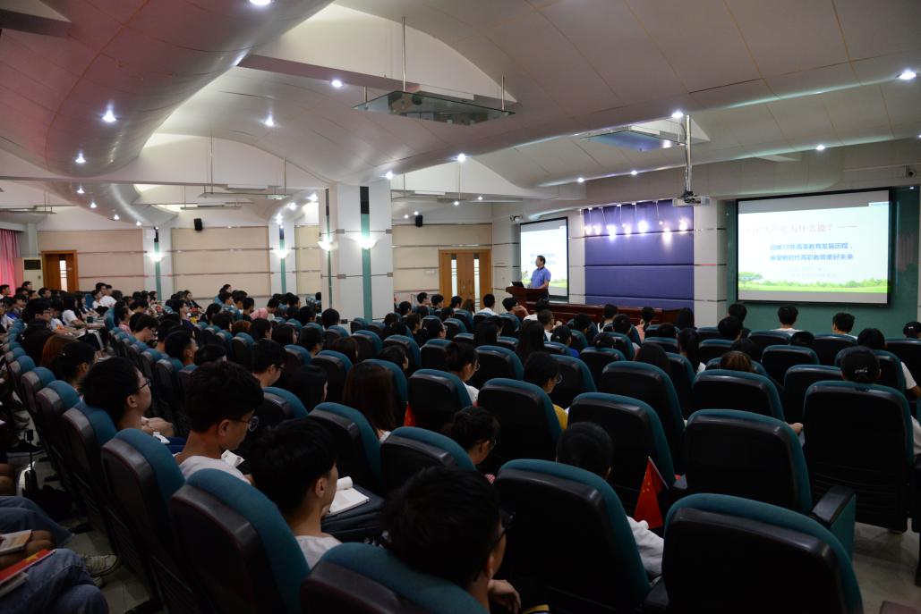 何校长讲授的专题“回眸70年高等教育发展历程,展望新时代高职教育美好未来”的精彩第一课。何校长从新中国成立以来我国高等教育发展历程;改革开放以来我国高等教育成就;新时代我国高等教育的新变化;新时代高职教育面临的机遇;“中国共产党为什能?”等几个方面进行了深入浅出的解读。