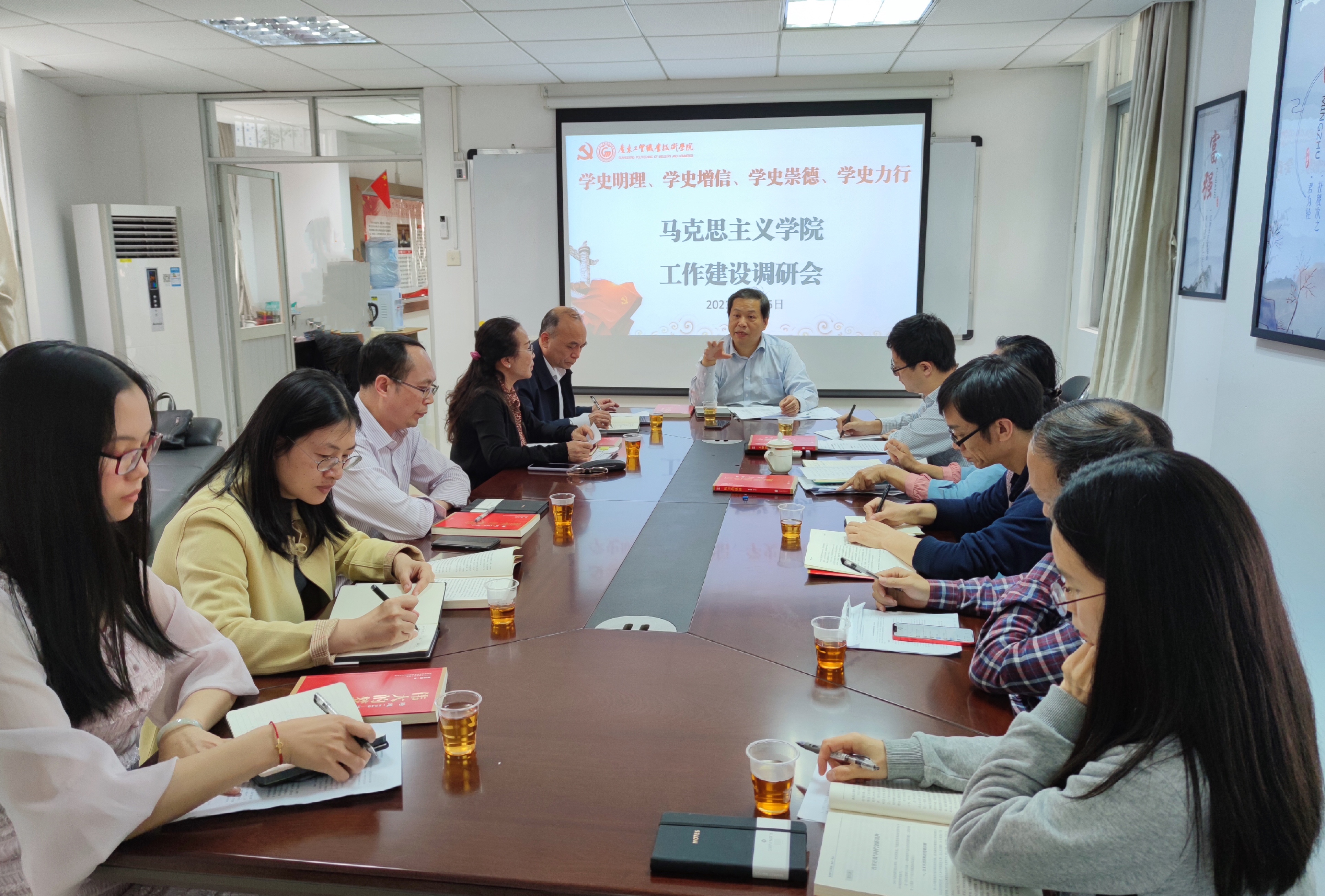 3月25日下午,学校党委副书记、校长何汉武、党委副书记、纪委书记、马院院长夏韩辉到马克思主义学院调研并指导工作,马院常务副院长李瑞清、副院长丁妙珍和部分教师代表参加了调研座谈。