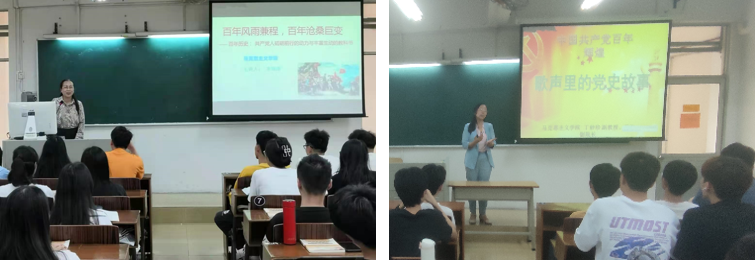 在马院直属党支部的统一安排下,各任课老师以教研室(党小组)为单位进行了集体备课,将党史教育分别融入到《思想道德修养与法律基础》、《毛泽东思想和中国特色社会主义理论体系概论》、《马克思主义中国化进程与青年使命担当》等课程,做到了全体马院教师和任课班级的全覆盖,宣讲内容有《百年风雨兼程 百年沧桑巨变—-百年党史:共产党人砥砺前行的动力与丰富生动的教科书》、《红船精神:开天辟地》、《毛泽东诗词中的党史》、《从万里长征到星辰大海》、《新中国70年奋斗与辉煌》、《改革开放:中国共产党的一次伟大觉醒》、《中国共产党领导脱贫攻坚的经验与启示》、《新时代中国共产党人的历史使命》、《观百年党史 悟初心使命》等,精彩纷呈,生动再现了中国共产党披荆斩棘、砥砺前行的百年风雨奋斗历程。