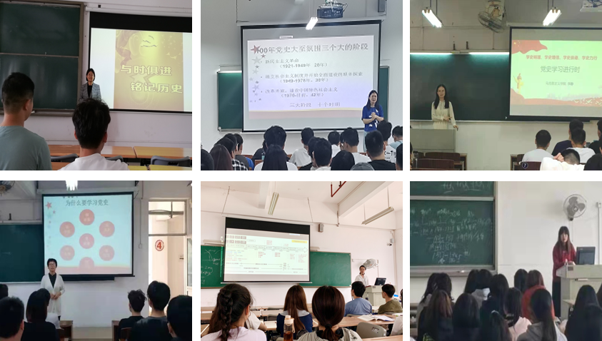 为深入学习贯彻习近平总书记在党史学习教育动员大会上的重要讲话精神,马克思主义学院充分发挥党史学习教育的主力军作用,从3月中下旬开始组织全体思政课教师利用课堂教育主阵地对我校天河、白云和荔湾校区的学生进行了党史专题宣讲,引导学生学史明理、学史增信、学史崇德、学史力行。
